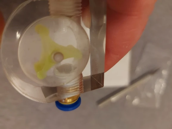Компонент протекает. Нужно открутить и добавить собственное уплотнение. Кроме того, разъем был слишком длинным и поэтому ротор не хотел вращаться