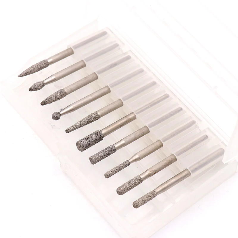 10 шт. Грит 150 Паяные алмазная шлифовальная головка 3 мм хвостовик резьба заусенцы для металла нефрита очищенные Агат Гранит инструменты для резьбы по камню