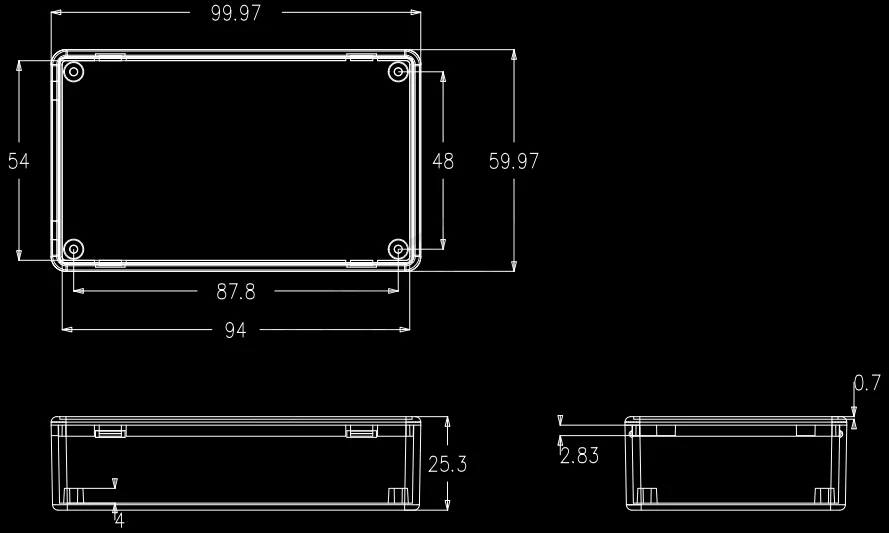 Корпус из АБС-пластика, водонепроницаемый, 100x60x25 мм
