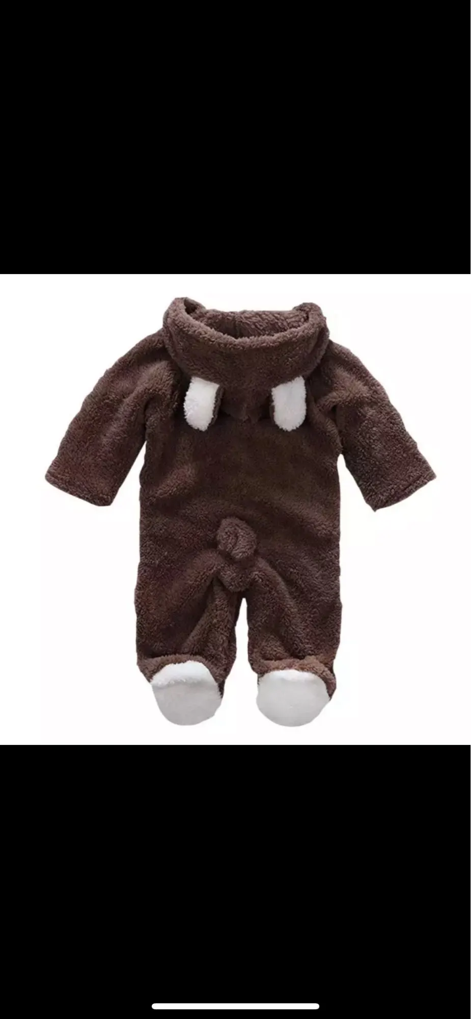 Зимний фланелевый комбинезон для маленьких мальчиков с 3D изображением медведя и ушей, теплый детский костюм для новорожденных 0-12 месяцев