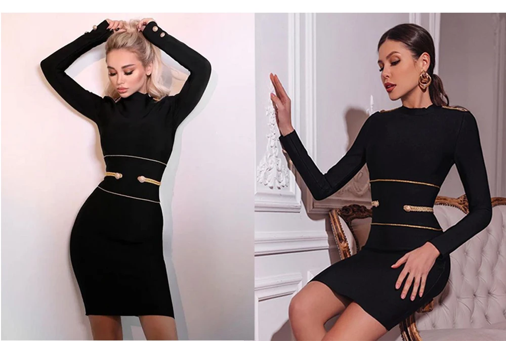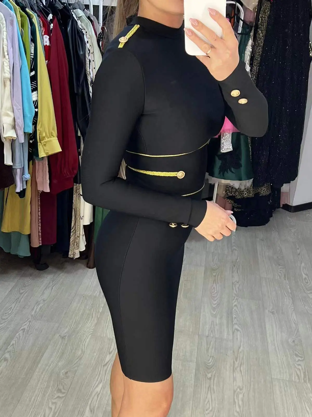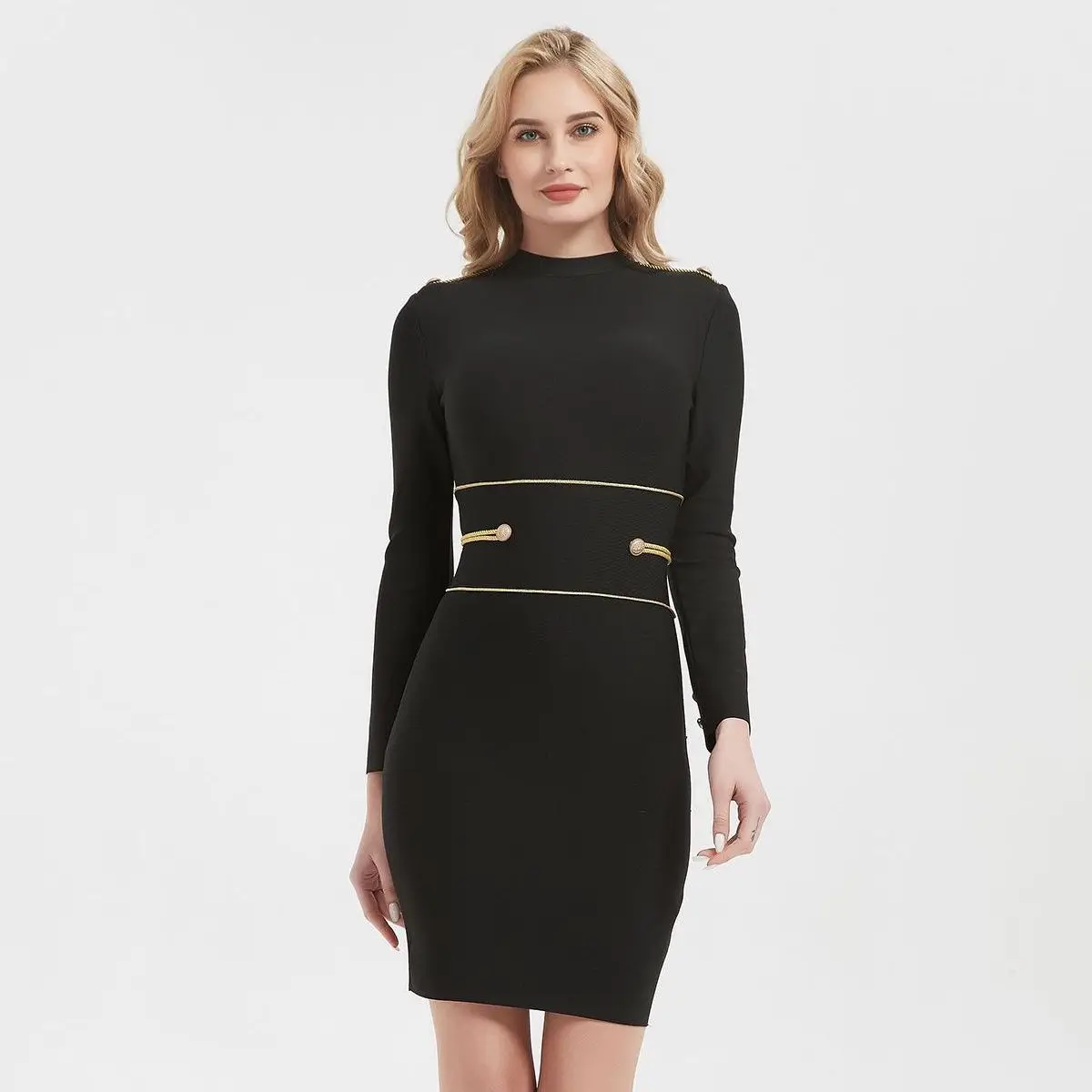 Женское Бандажное платье с длинным рукавом, черное облегающее мини-платье на пуговицах, элегантное модельное вечернее праздвечерние чное платье знаменитости с круглым вырезом для ночного клуба