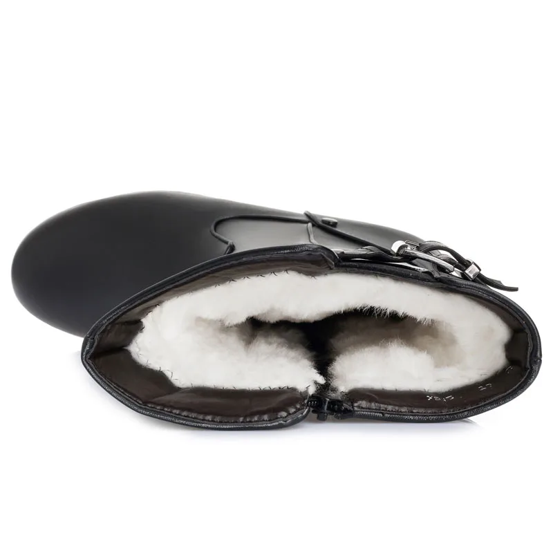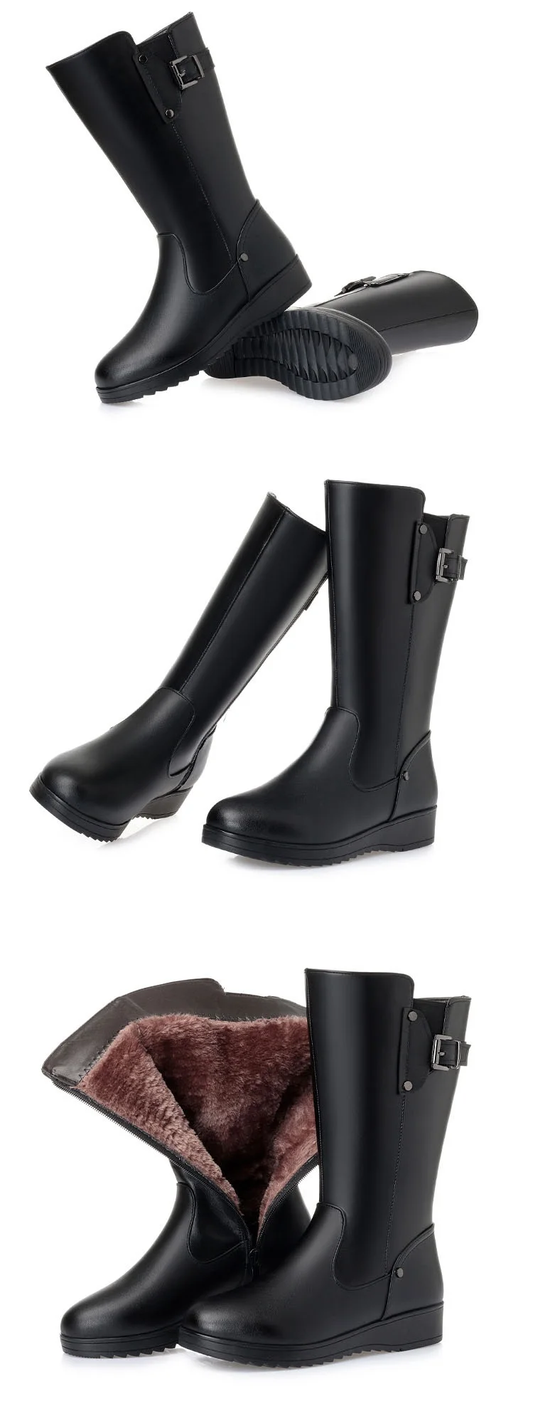 DRKANOLтеплые зимние сапоги на меху из натуральной шерсти; Женские сапоги до середины икры на плоской подошве; Водонепроницаемые сапоги из натуральной кожи; Цвет Черный; Большие размеры 35-43
