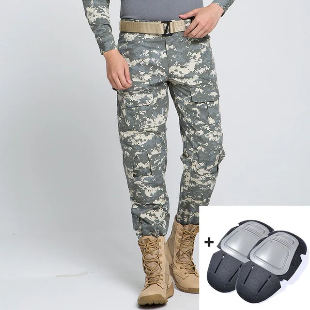 Брюки-карго мужские тактические в стиле милитари, камуфляжные брюки с наколенниками, рабочие штаны, армейские охотники, спецназ, боевые штаны