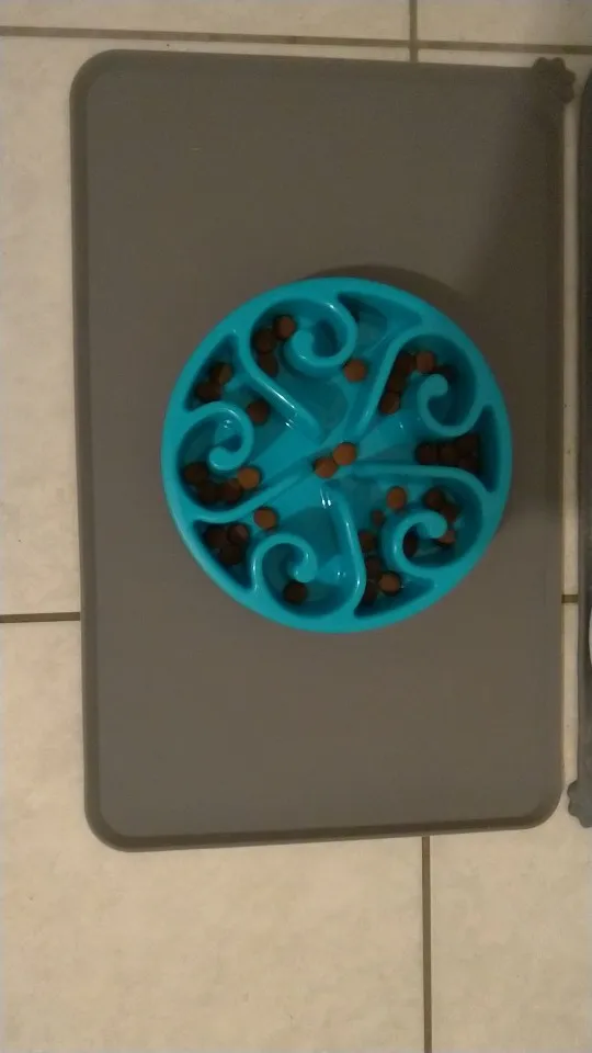 Хороший коврик. Бортики в нем небольшие, сам не очень толстый, но еда на месте, не рассыпается.
