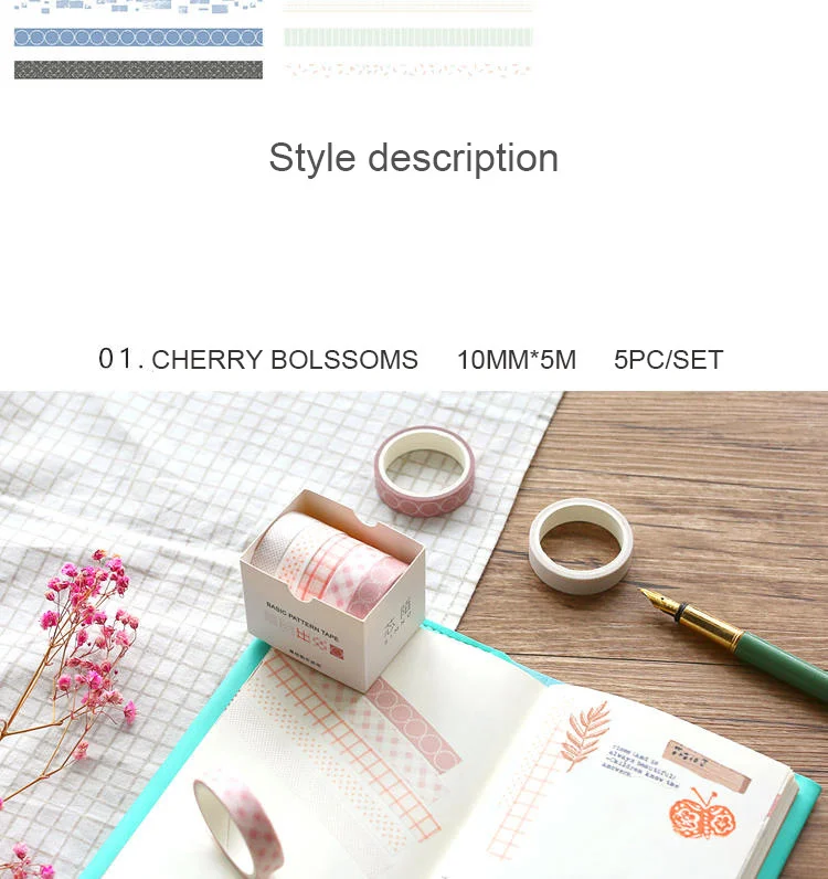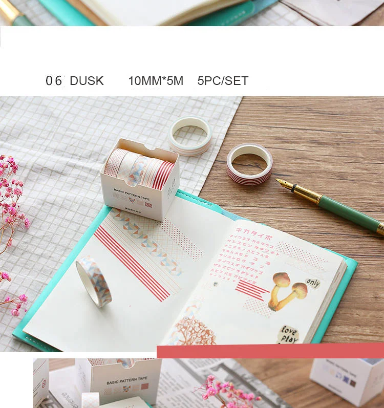 10 мм x 3 м 5 шт.компл. серия чистых цветов васи лента Геометрическая сетка саржевая Маскировочная лента шаблон Скрапбукинг DIY наклейки учебные принадлежности