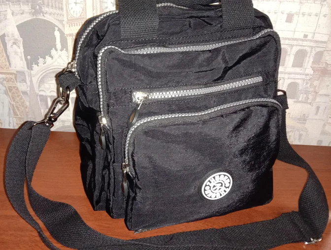 Прибыла в Италию с упаковкой в течение 20 дней. Чтобы увидеть, что он выглядит солидно и хорошо сделан, маленький, но довольно вместительный. Имеет много карманов, хорошо пропускает молнии и нейлон хорошего качества. Продавец включил regalino.