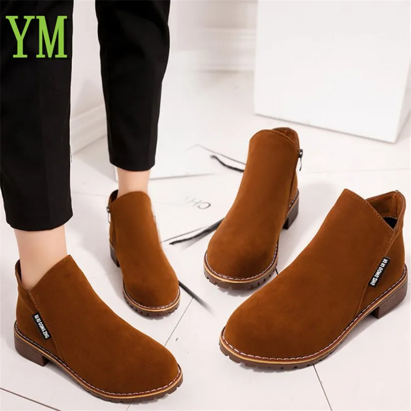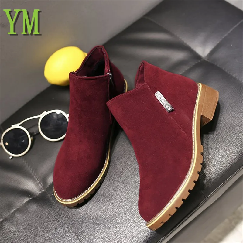 Осенне-весенние женские ботинки; Матовые ботинки из флока для Fe...