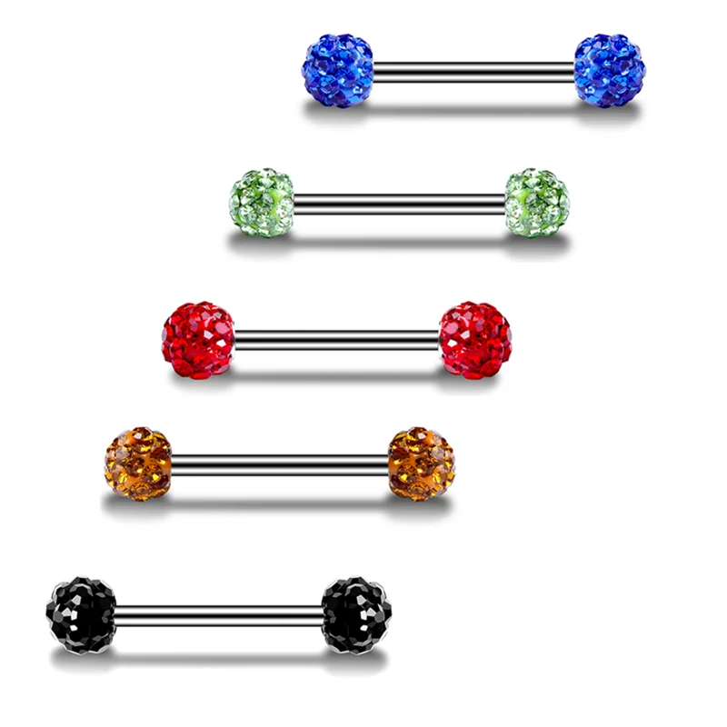 MODRSA, 1 шт., промышленный Пирсинг из нержавеющей стали пирсинг-штанга для языка, хрустальный шарик, нос, уши, гвоздики для сосков, губ, украшения для пирсинга тела