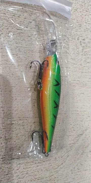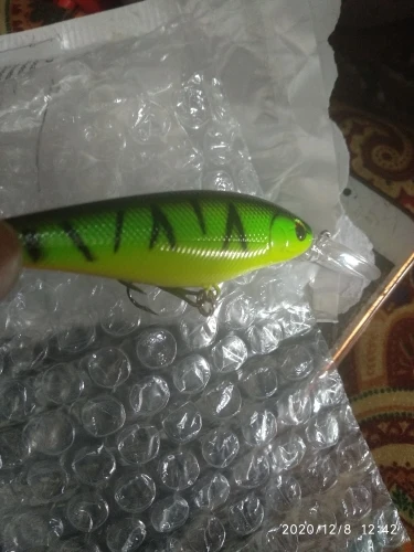 Воблер качественный покраска нормальная.Рыбка красивая...можно на Елку н-г вешать Длина 11см . Взвесил = 9,8гр. Брал на распродаже за 56,85 р... для расходника нормальная. Мнение зубатой пока не спрашивал. Доставка меньше месяца. Спасибо продавцу. Рекомендую.