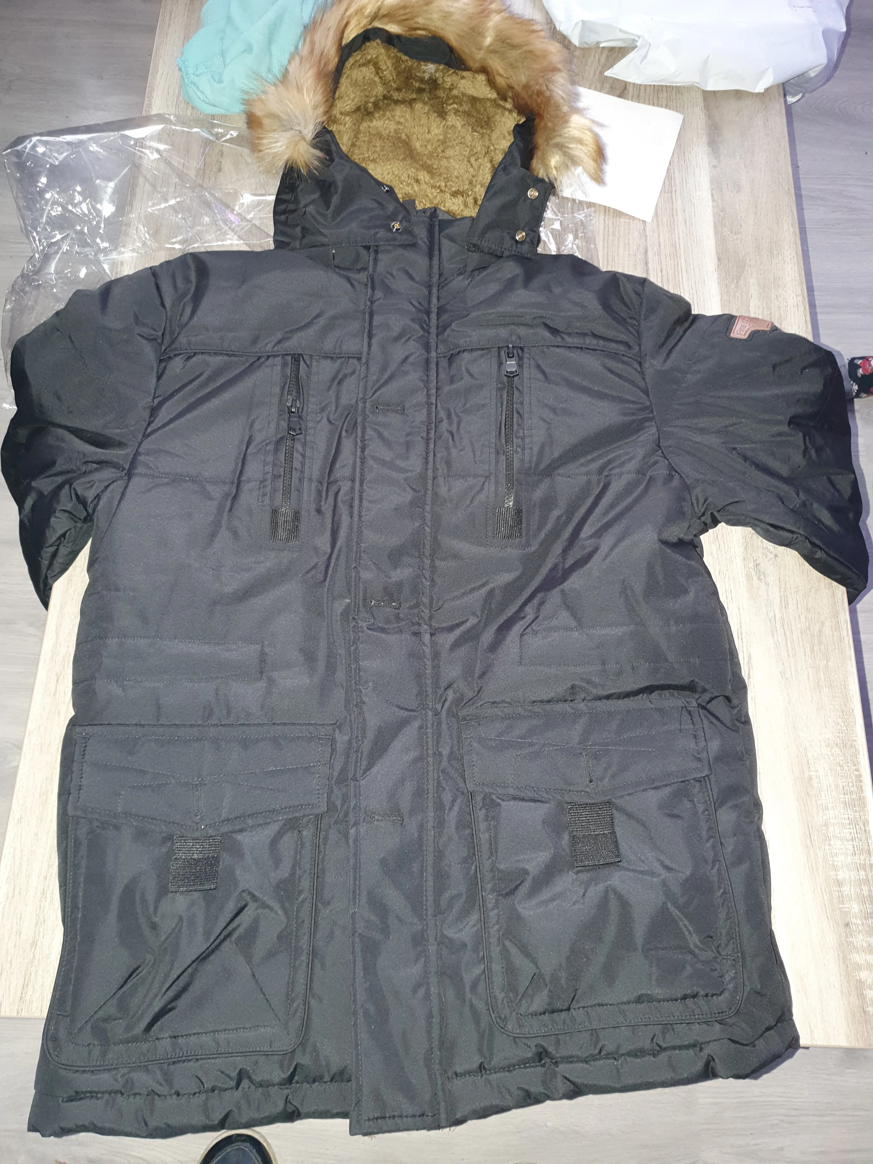 Выбирал куртку по таблице размеров. Выбрал XXL, по идее должен был ещё остаться небольшой запас, но размер даже оказался маловат. И пуговицы которые идут вдоль молнии не чёрные а коричневые, неоднородные, выглядит не очень.