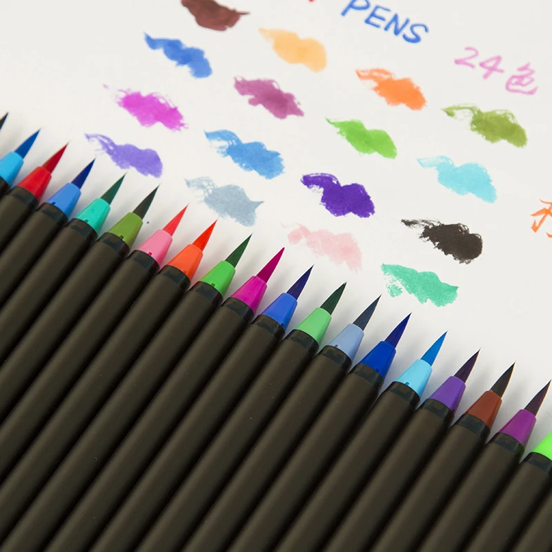 Набор акварельных ручек, набор из 24 ярких маркеров с гибким нейлоновым наконечником кисти для раскрасок, каллиграфия