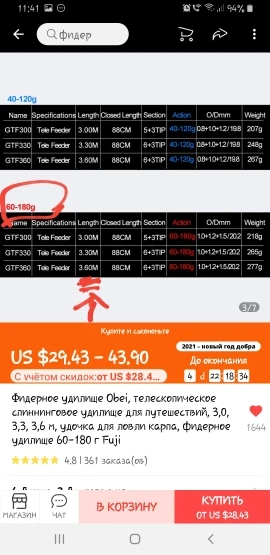 Страна: IL Ships From: China length: 3.6m 40-120g Доставка: J-NET 07.12.2020