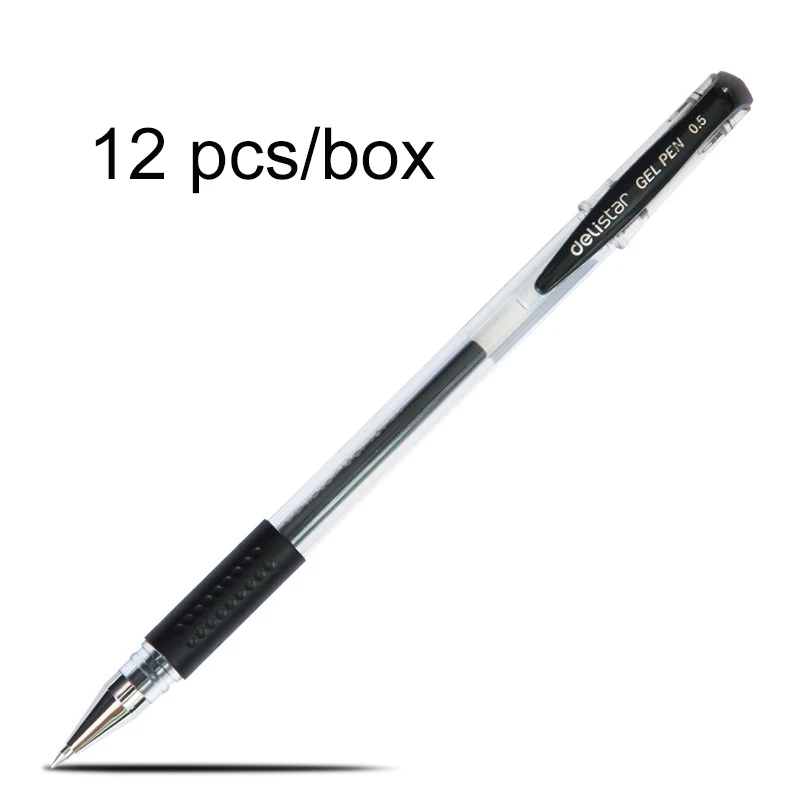 Гелевые ручки, Дели, 12 шт., 0,5 мм, канцелярские принадлежности, гелевые ручки для студентов, для письма, черный, красный, синий, высокое качество, Заправка для гелевой ручки