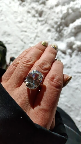 перстень обалденный! смотрится как горный хрусталь! блеск шикарный.вечером, лучики от граней, играют особенно. не знаю, как долго сохранится внешний вид? но сейчас - это прелесть.