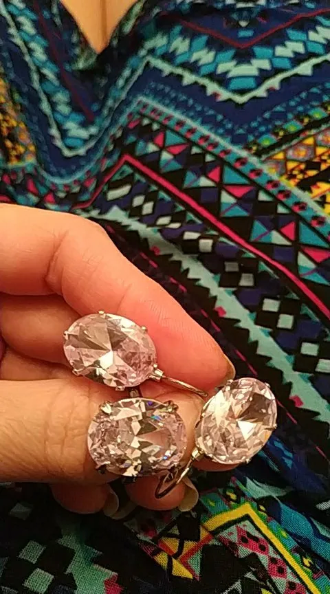 не ожидала насколько красивые кольцо и серьги. грани переливается, очень сильно довольна. Спасибо огромное!!!!