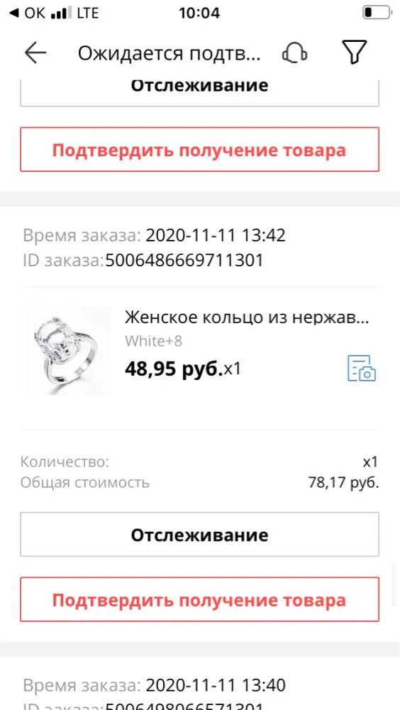 Заказала два в разных цветах. Оба дошли в одном пакете. Изумительные колечки Много покупала бижутерии на али разного качества приходили, но это качество превзошла мои ожидания!!! Отличное качество Камень хоть и стекло, но очень аккуратно ограненное и очень переливается. За такую смешную цену, такую красоту Однозначно рекомендую этого продавца! Спасибо.