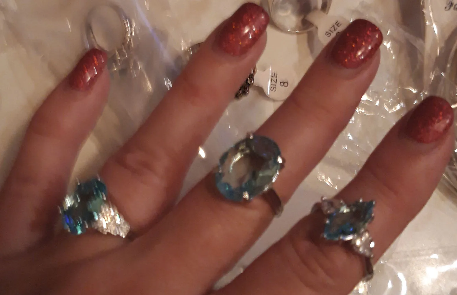 Супер кольца! Покупала к серёжкам, попала в яблочко! Отличный комплект! Стекло обработано филигранно! Камень сияет! Продавец отправил заказ быстро, в течении трех недель я его получила(Китай-Пенза). Кольца немного свободные, но не сильно. Великолепный подарок на Новый год!