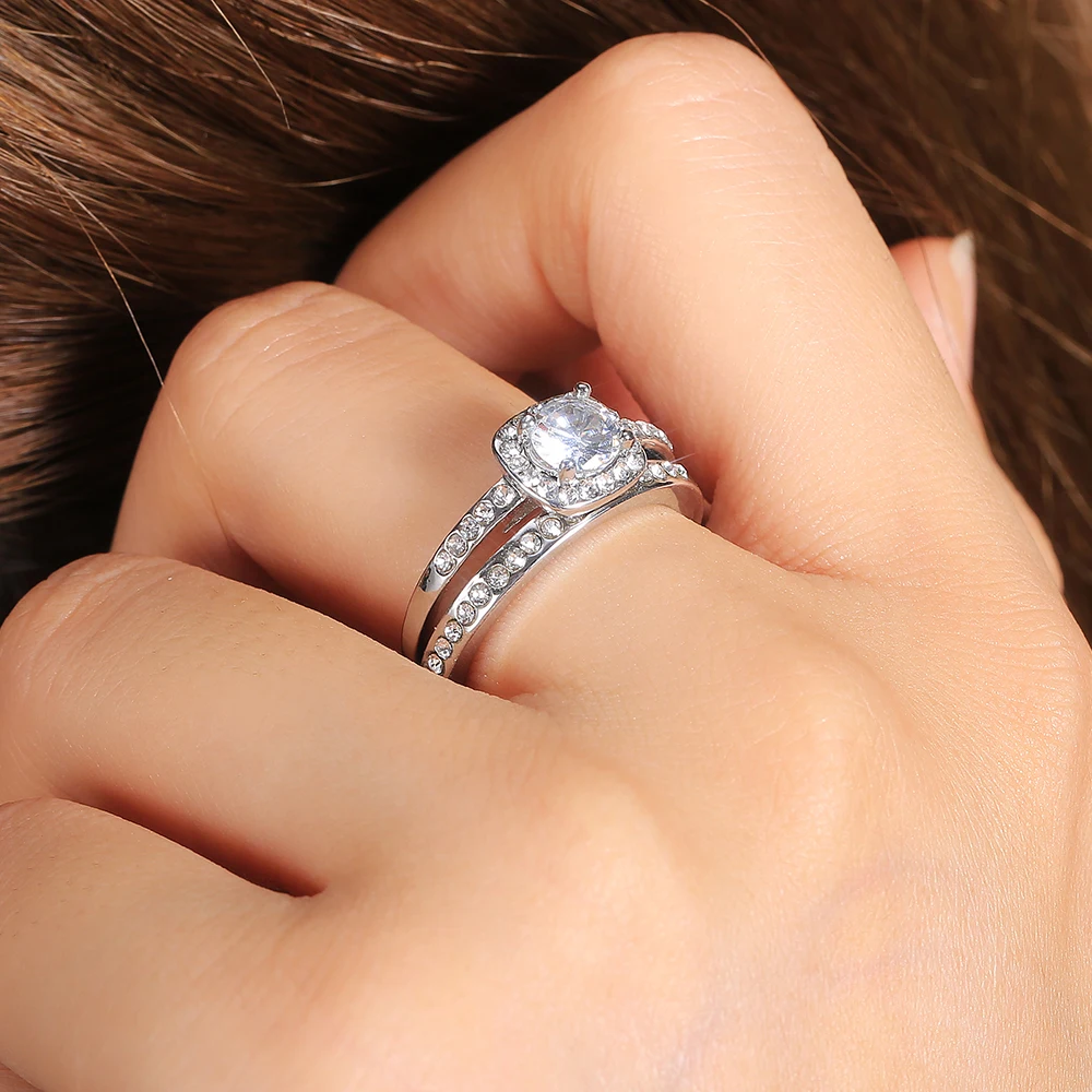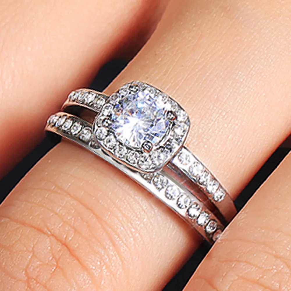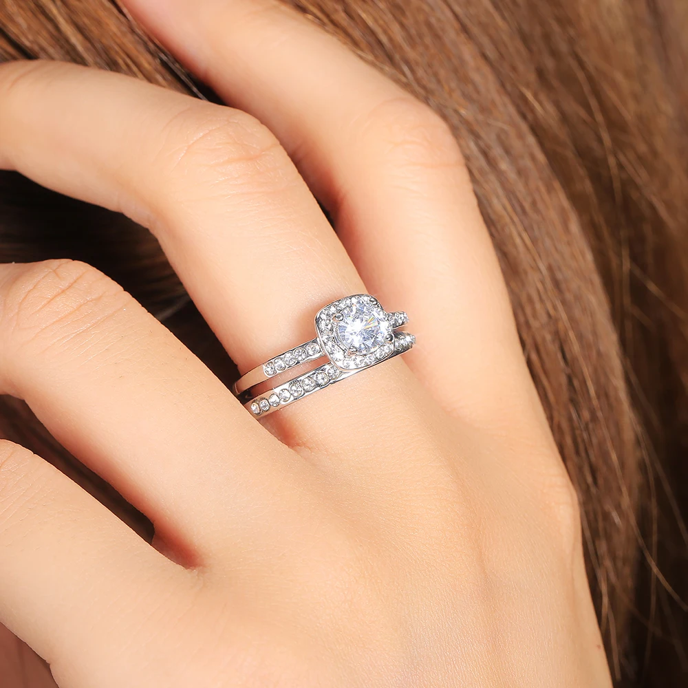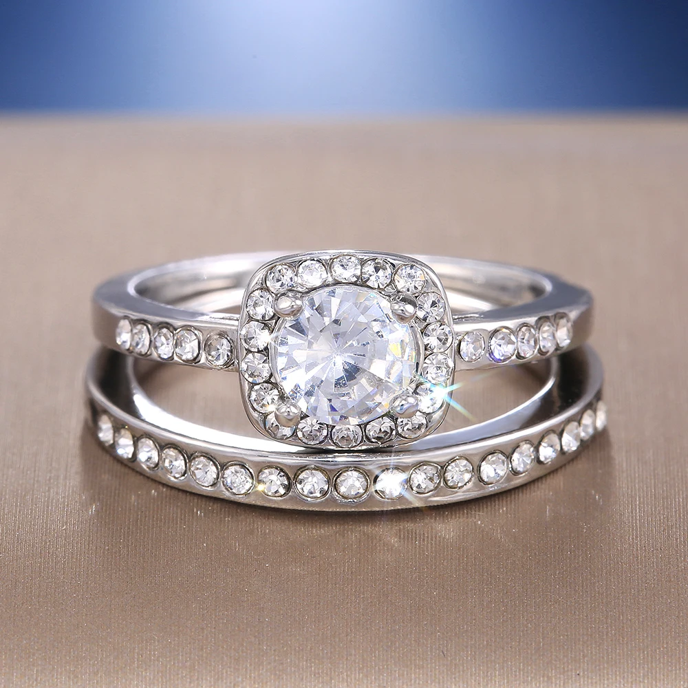 Женское свадебное кольцо Huitan, обручальное кольцо с круглым бриллиантовым кубическим цирконием, размер 5-12, 2 шт.