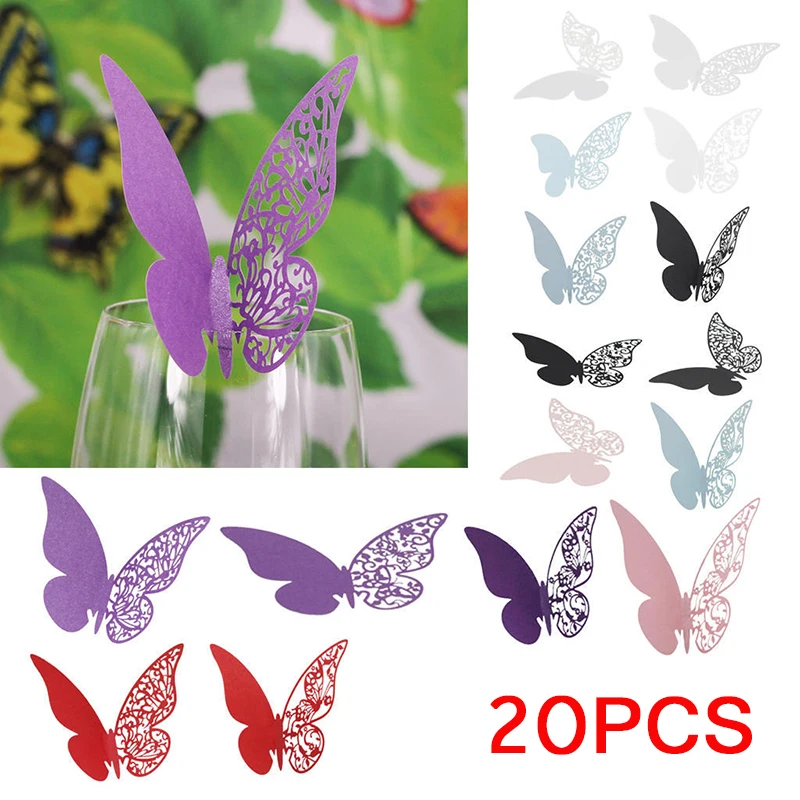 20 шт.лот бабочка Лазерная резка бумаги Место картыкарточка сопровождениячашки картывина стеклянные карты для украшения свадебной вечеринки