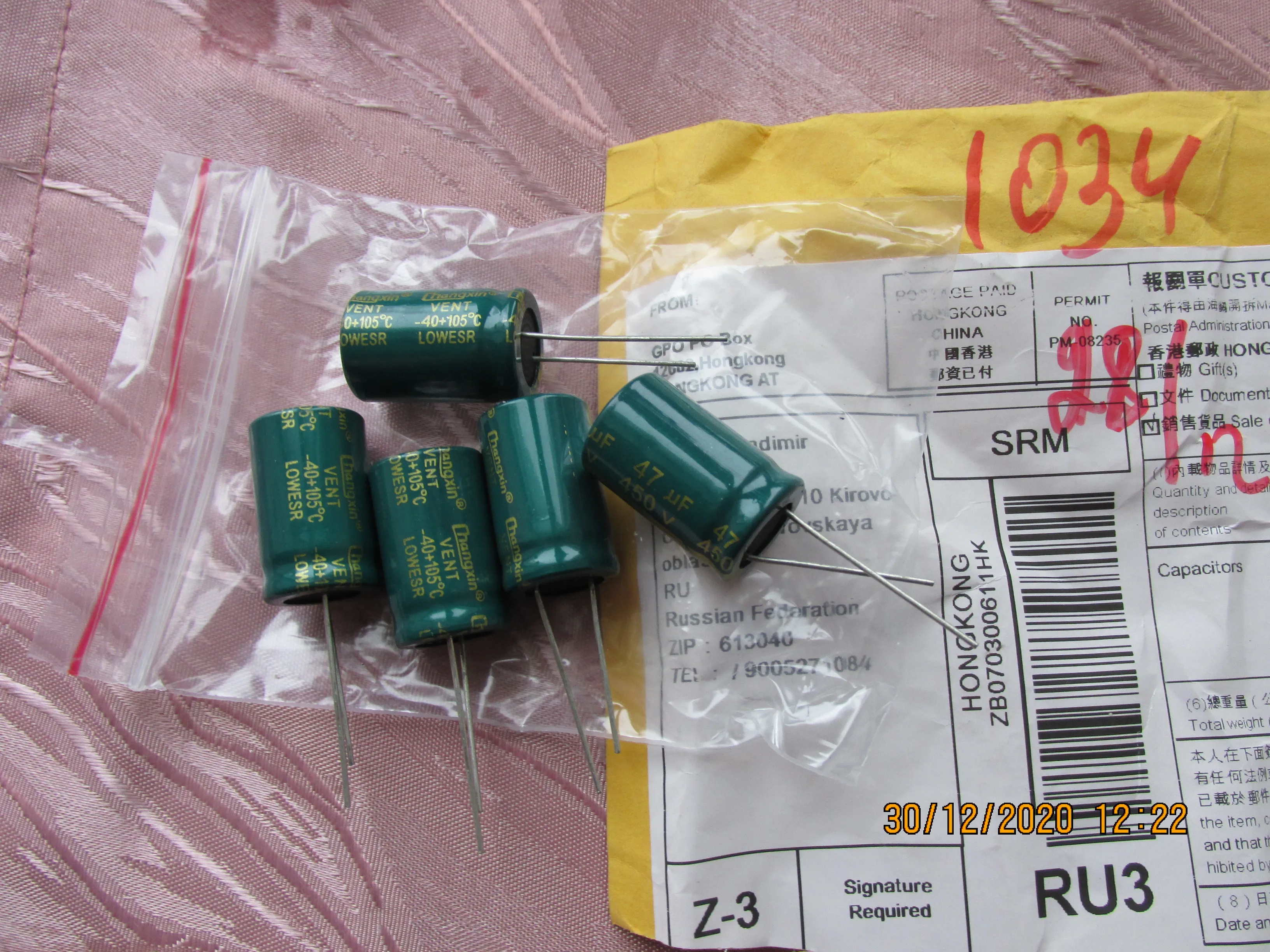Шло долговато, но заказ не первый. Проверил все на ESR в тестере ТС1, сопротивление в среднем 1.2 Ом. Емкость 46 мкФ.
