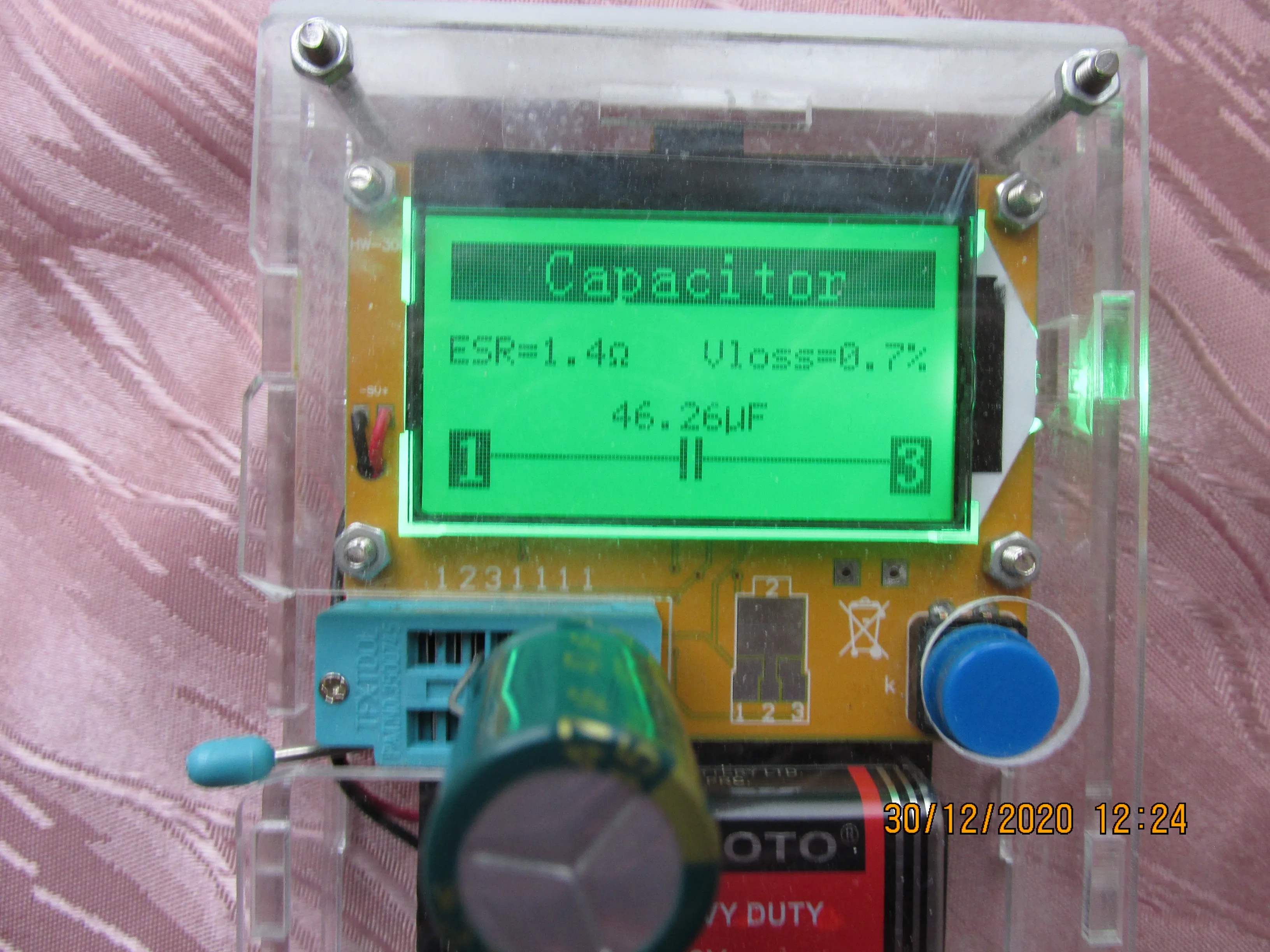Емкость конденсаторов от 40мкф до 45мкф при заявленной 47мкф, ESR 1ом
