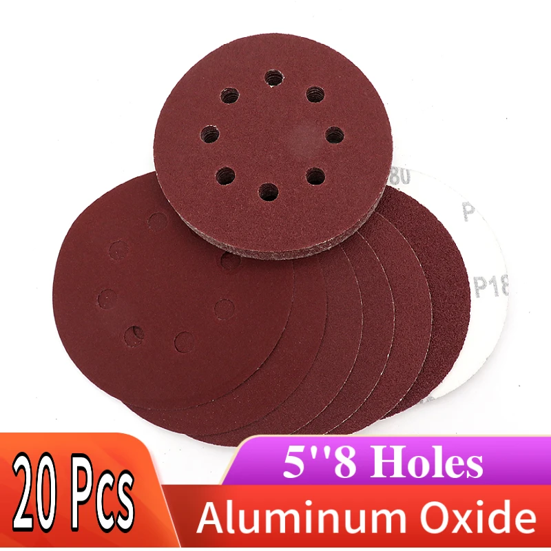 Листы для шлифования, крючок-петля на 8 отверстий, 5 дюймов, 125 мм, диск из оксида алюминия шлифование наждачной бумагой, зернистость от 60 до 2000, 20 шт.