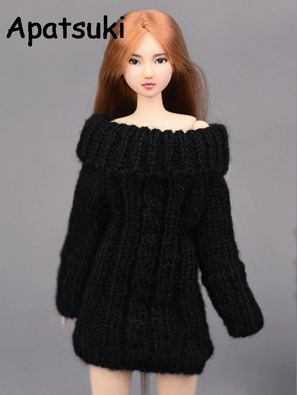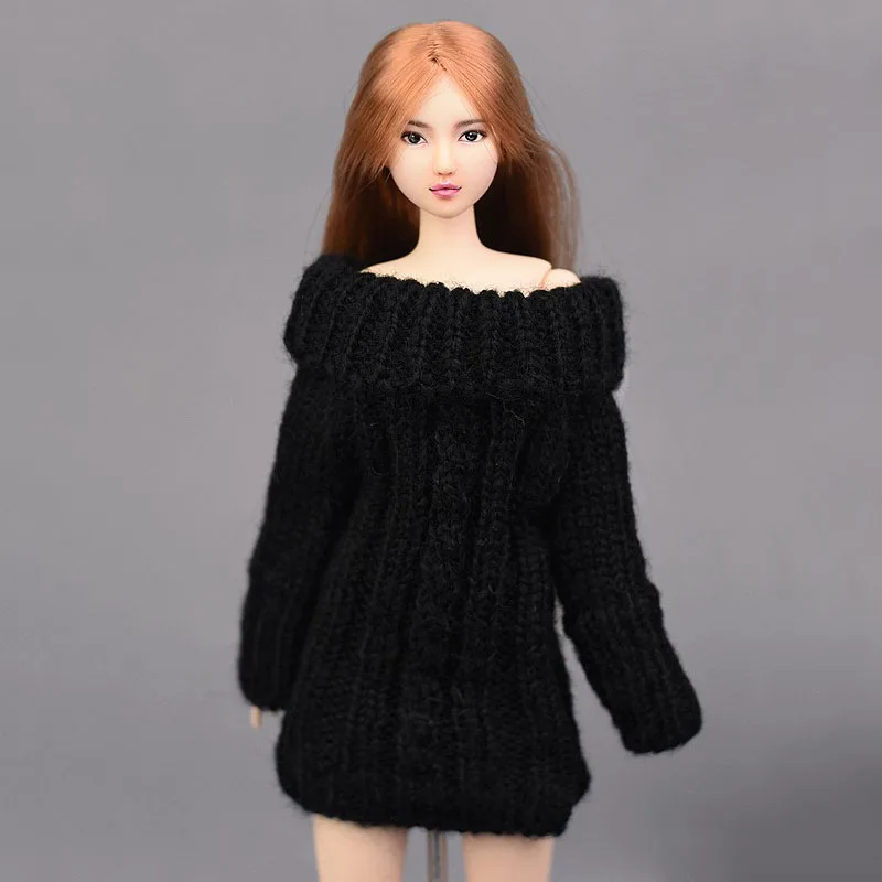 Черный вязаный тканый свитер для куклы Барби, одежда ручной работы, топы, пальто, платье, Одежда для куклы, подарки для детей