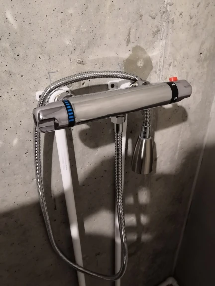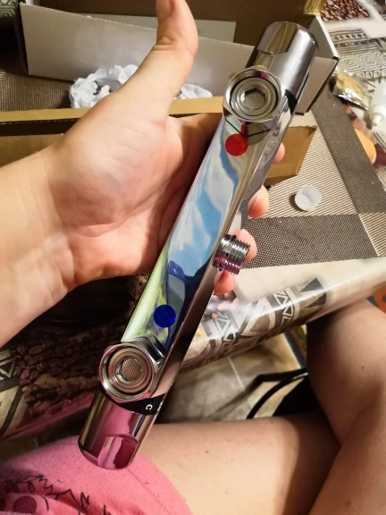Отличный смеситель, температуру держит какую выставишь. До этого был обычный смеситель, замучился выставлять нужную температуру воды. До этого в ванную брал другую модель, полностью металлическую, тоже отличная. У этой модели ручки пластмассовые, посмотрим на сколько хватит. Единственный минус это через несколько дней потёк (на 3 фото). Открутил и обратно на место поставил терморегулятор и больше не капает. Скорее всего уплотнение не правильно село при сборке.