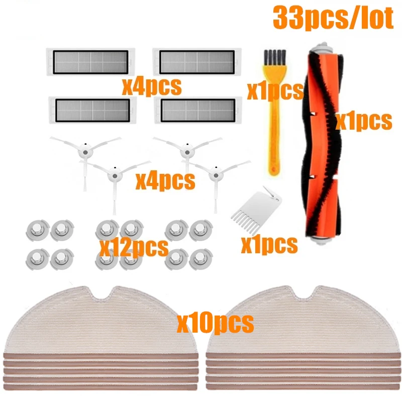 Комплекты запасных частей для робота-пылесоса xiaomi roborock s50, S5, S6, E4, основная щетка, фильтр, боковая щетка, ткань для швабры