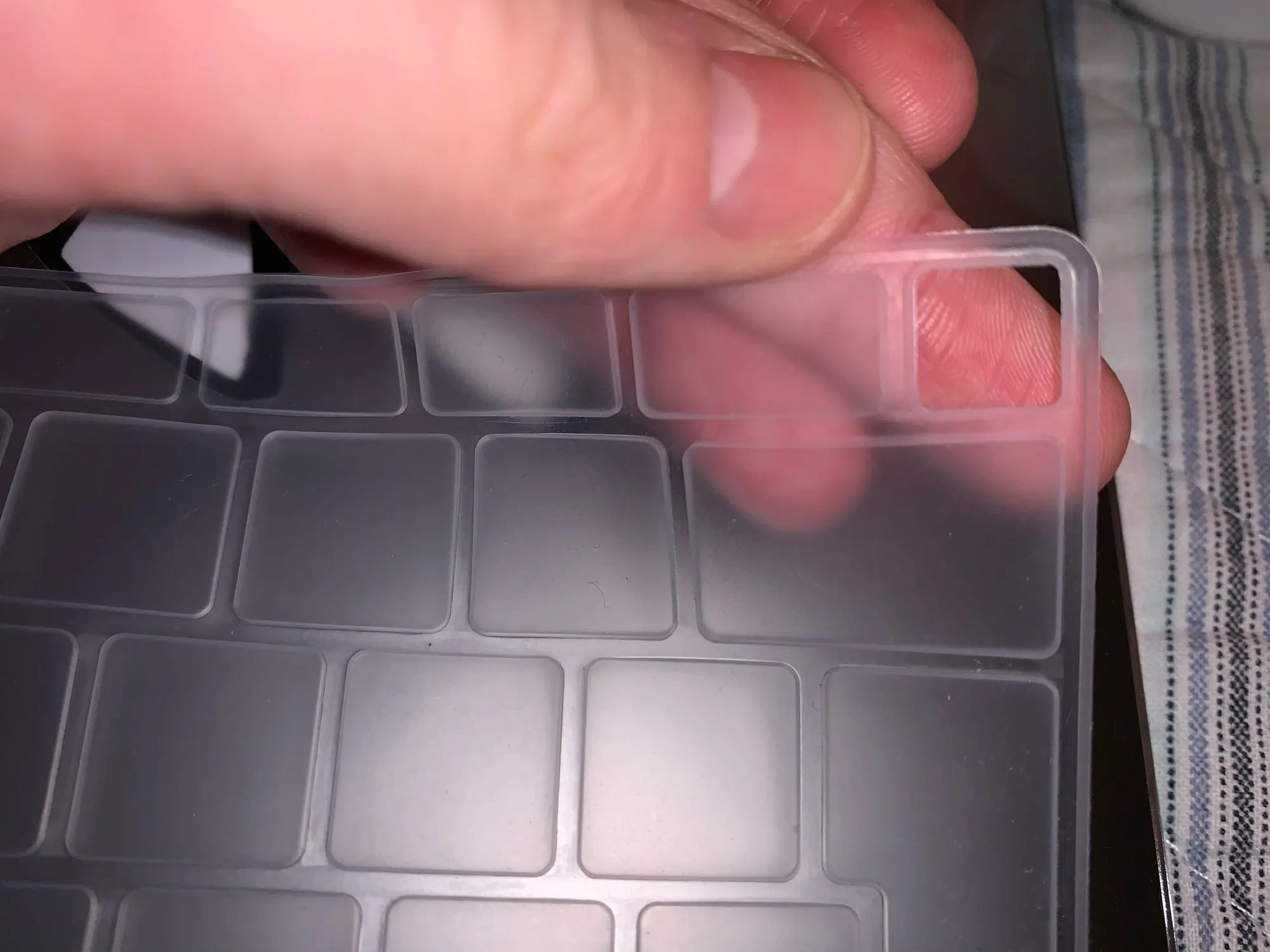 Чехол приехал очень быстро. Заказывала прозрачный, сидит как влитой, плотный и глянцевый, очень всем довольна. Защита для клавиатуры при нажатии появляются «пятна» потому прилипает к кнопкам и кажется что жирные пятна.