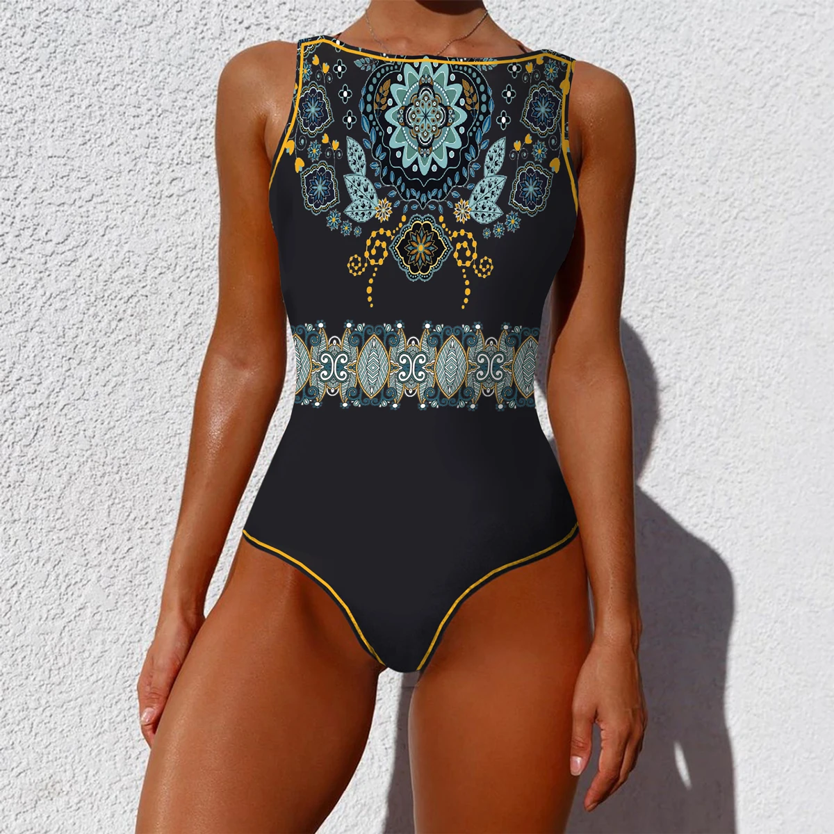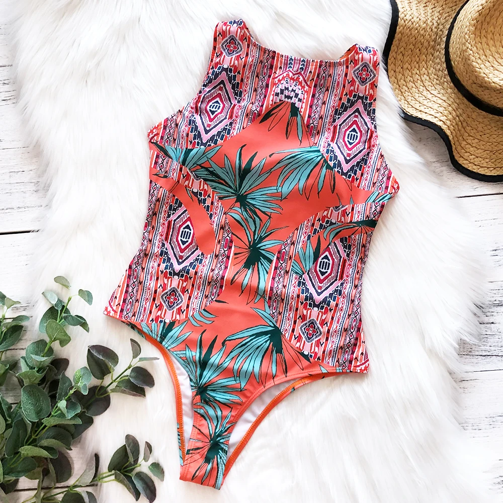 Слитный купальник с принтом, новинка 2022, купальник пуш-ап, женские винтажные Ретро купальные костюмы, боди, пляжная одежда, монокини с открытой спиной
