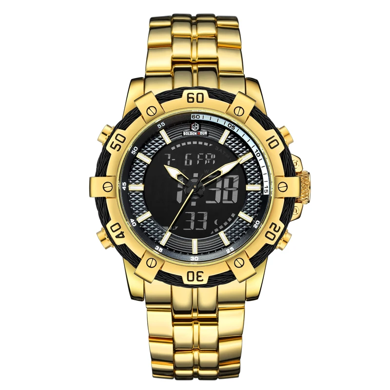 Часы мужские Кварцевые водонепроницаемые из нержавеющей стали с двойным дисплеем