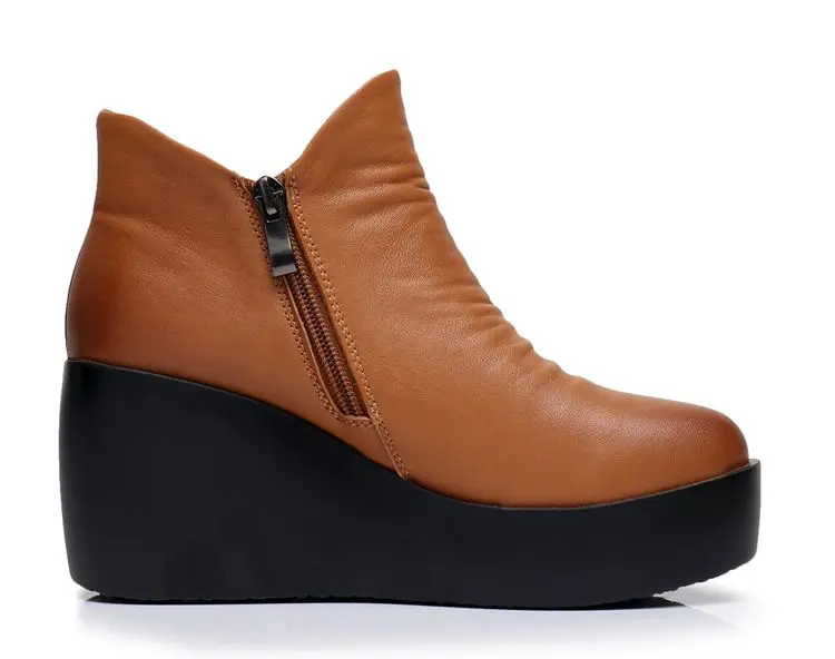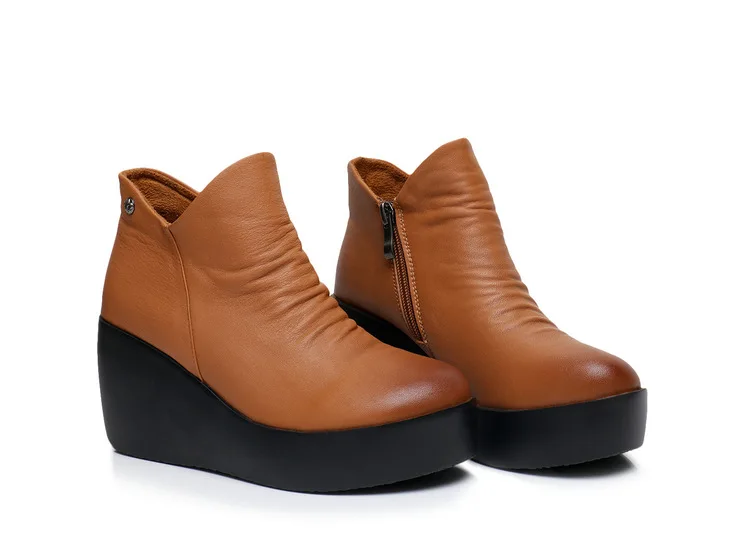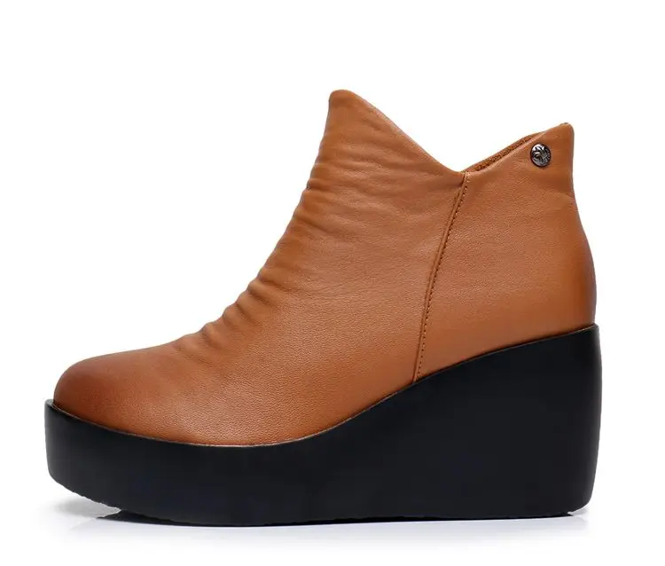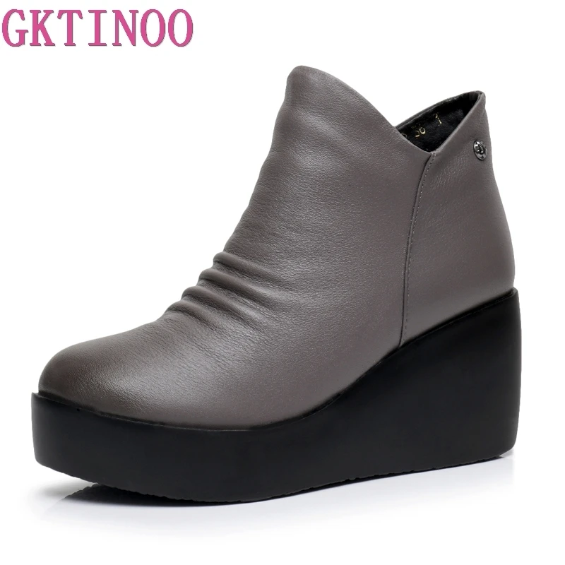 GKTINOOНовинка 2022 года; Женская обувь; Сезон осень-зима; Женские зимние ботинки из натуральной кожи на танкетке; Женские ботильоны, увеличивающие рост; Обувь на платформе