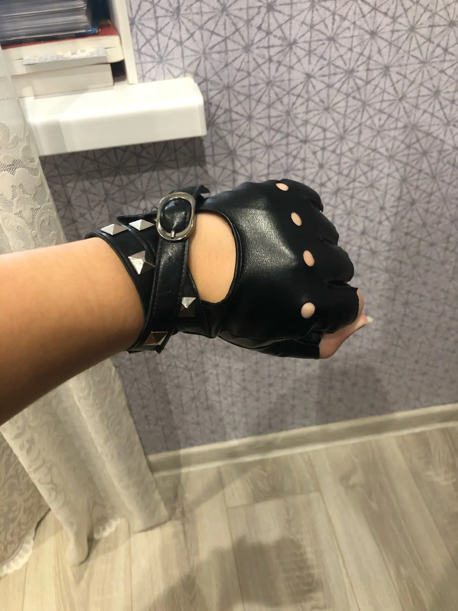 Женские кожаные перчатки, 1 пара, готические, панк, сексуальные, для дискотек, рок-н-ролл, без пальцев, черные, красные, белые