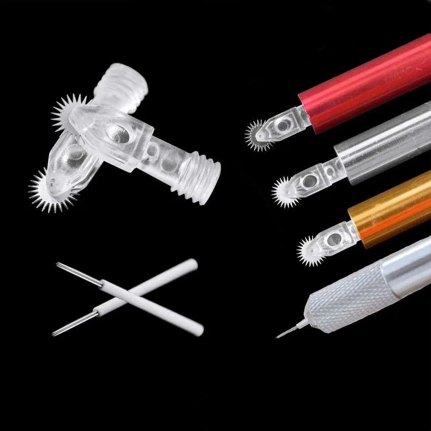 Ручные ручки наборы с роликовыми булавки иглы Круглые лезвия туман бровей Перманентный макияж микроблейдинг Набор двойной головки пистолет инструменты для красоты