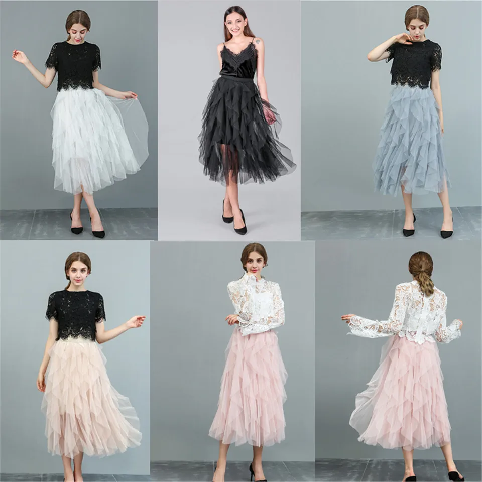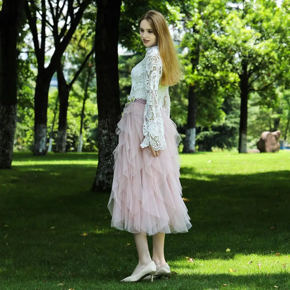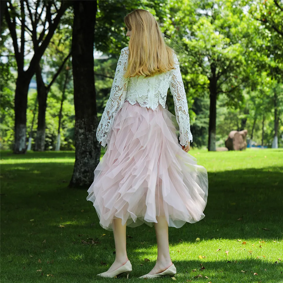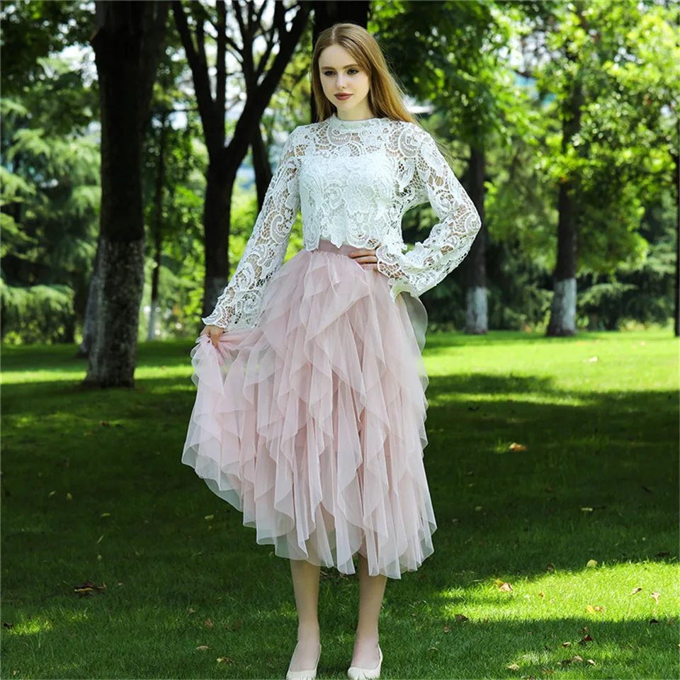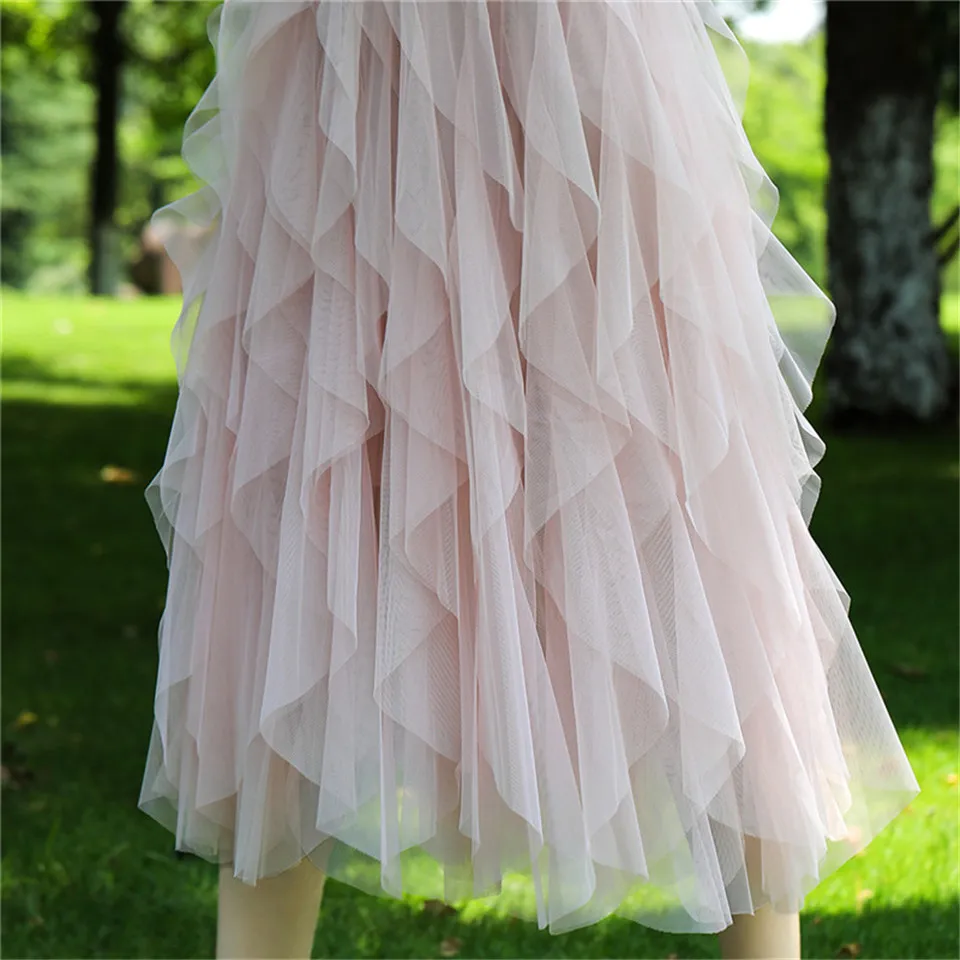 Женская длинная юбка из тюля, розовая пляжная юбка с высокой талией и оборками, юбка миди из тюля в стиле бохо, лето 2022