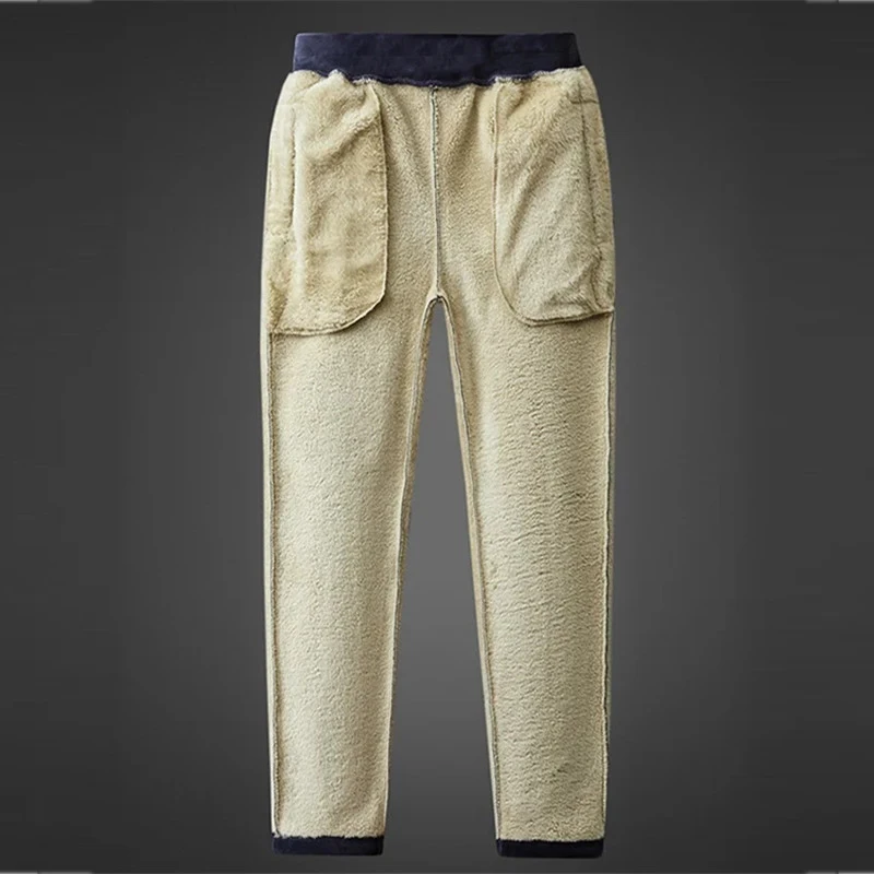 Брюки мужские зимние, из шерсти ягненка, теплые, контрастные, 2021, защита для ног