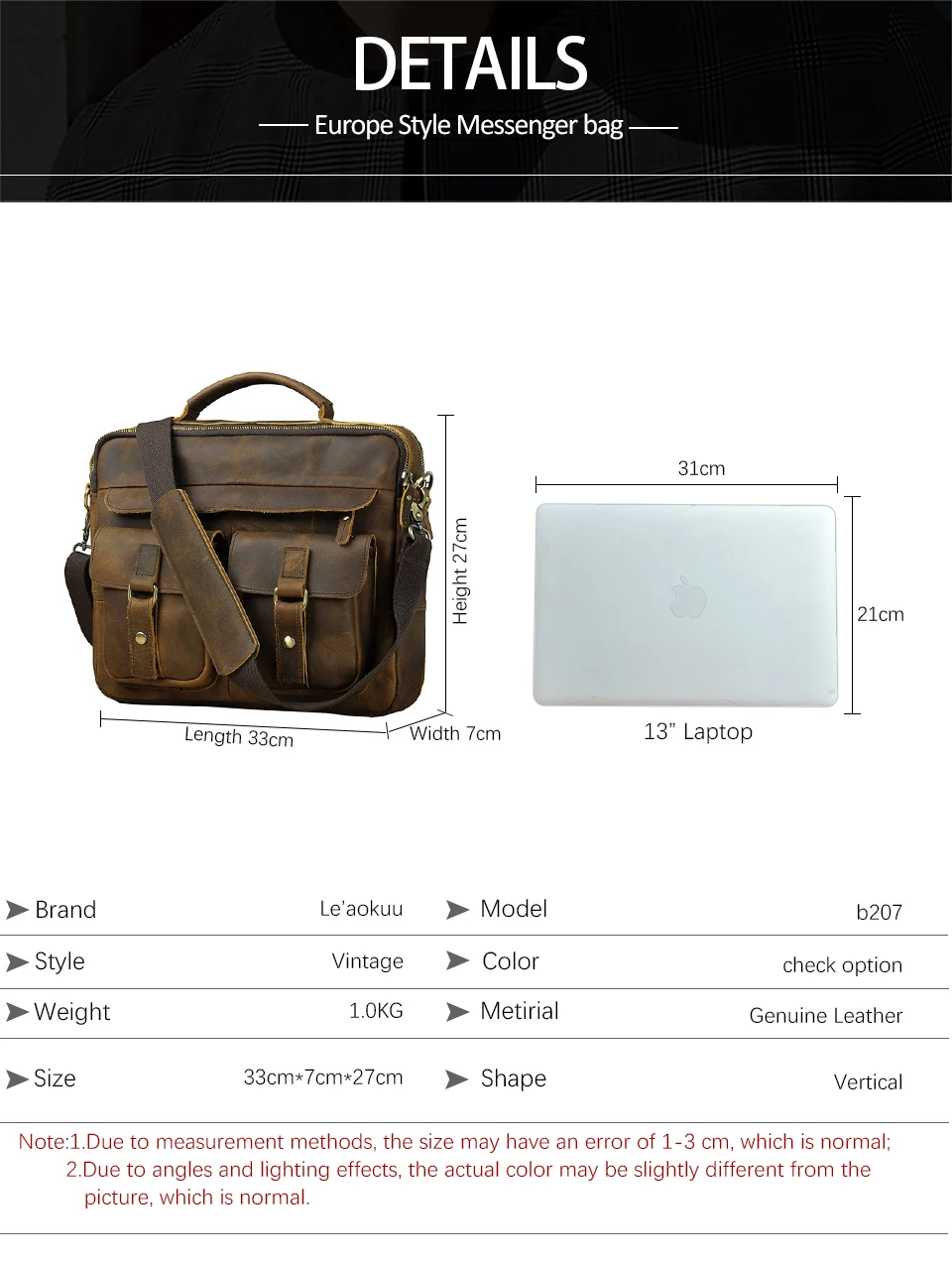 Le'aokuu, мужские чехлы для ноутбуков 13 дюймов, из натуральной кожи, в старинном стиле, портфель кофейного цвета, деловые сумки-портфели, B207-d