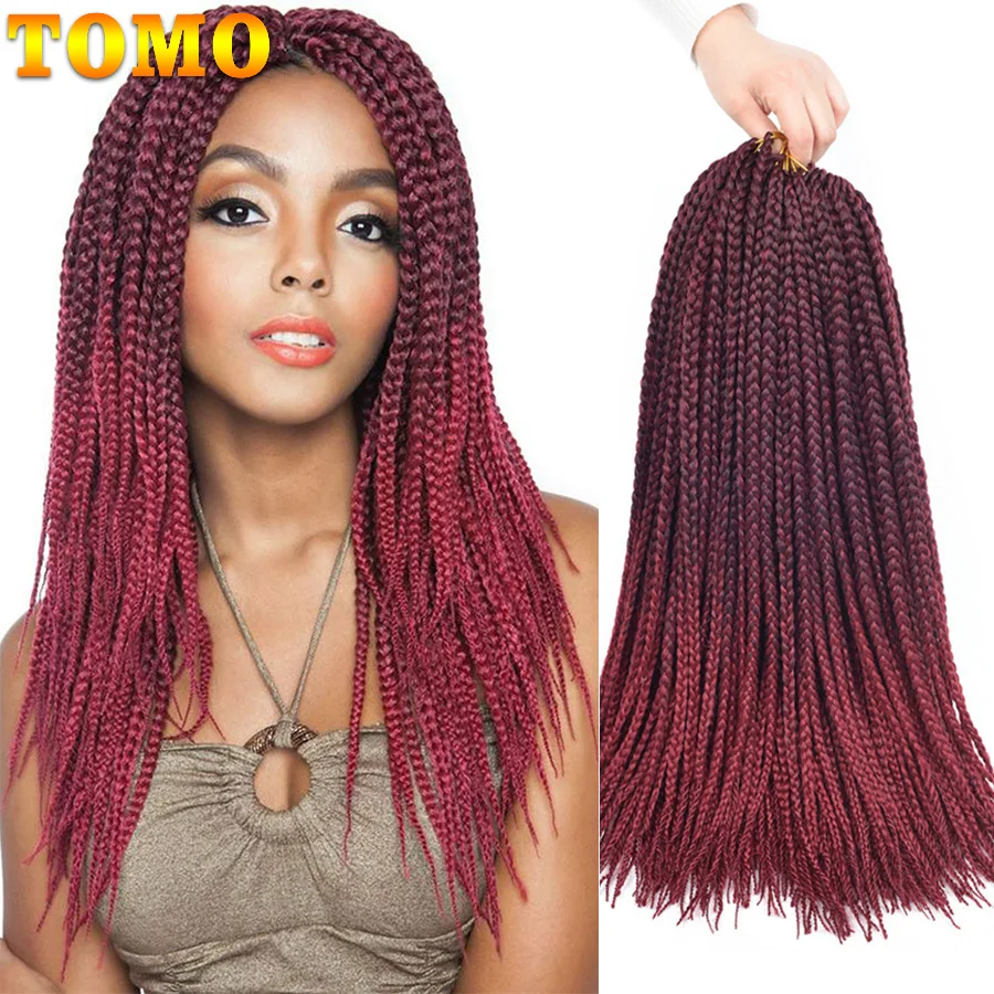 Синтетические косички TOMO, косички для плетения крючком, 22 корня, 14, 18, 22 дюйма, красные, черные, коричневые