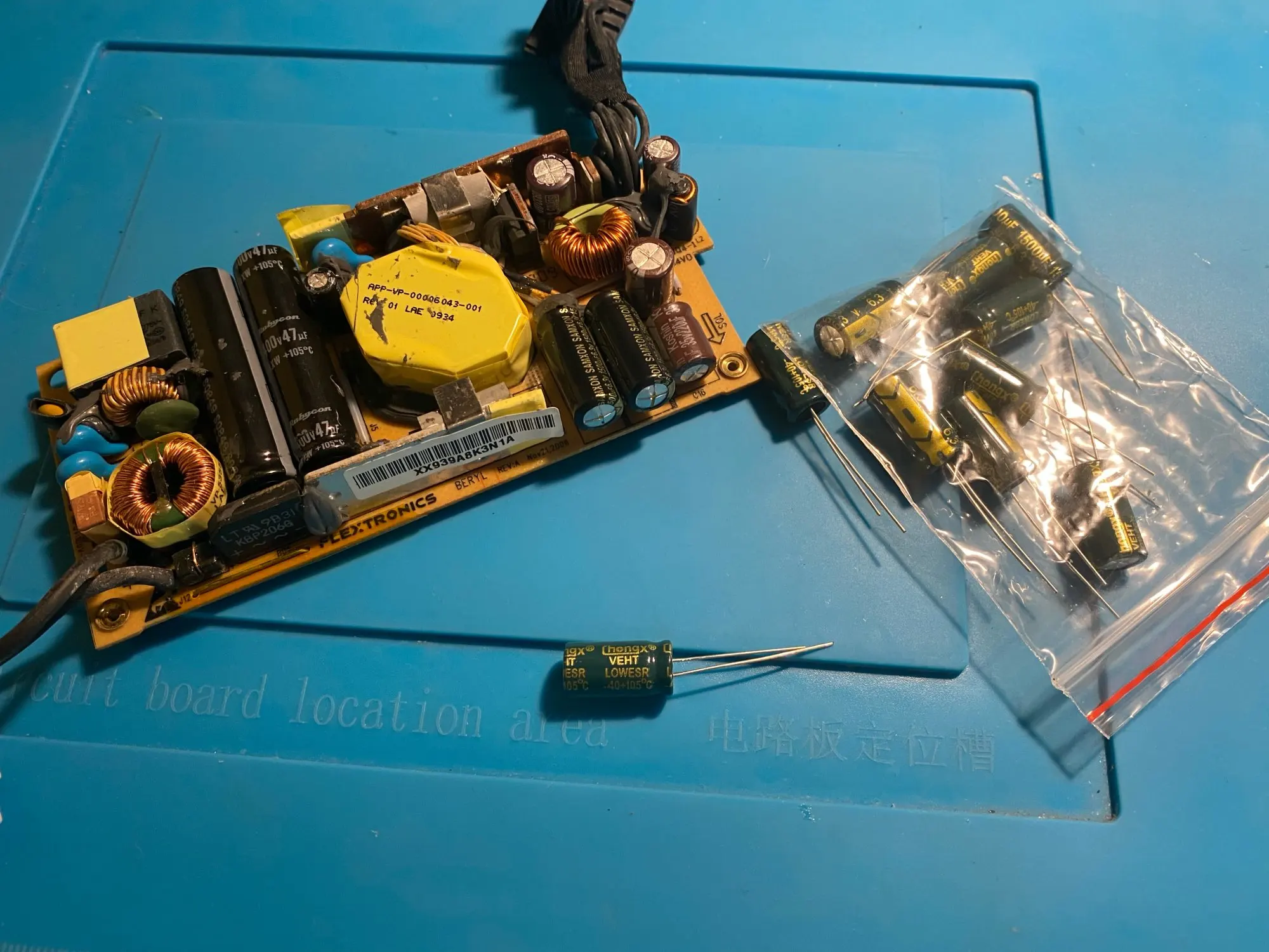 Это самая вероятная замена, которая вам понадобится для ремонта блока питания Apple аэропорта Time Capsule. Это устройство, из-за его плохого дизайна, имеет плохую вентиляцию, чтобы сохранить свой собственный источник питания свежим, поэтому первые компоненты повреждены, являются электролитическими конденсаторами вторичного: пара 1500 мкФ 6,3 в рядом с основным трансформатором. На данный момент они работают очень хорошо: у меня осталось 8 конденсаторов, чтобы продолжать ремонтировать этот источник в случае, если они продолжают портиться.