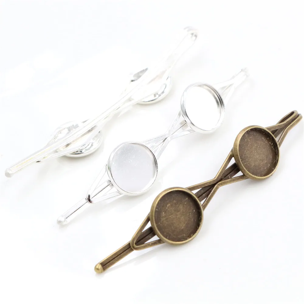 12 мм 10 шт два Камея высокого качества бронзовые и посеребренные медные зажимы для волос заколка для волос основа Установка Кабошон Камея