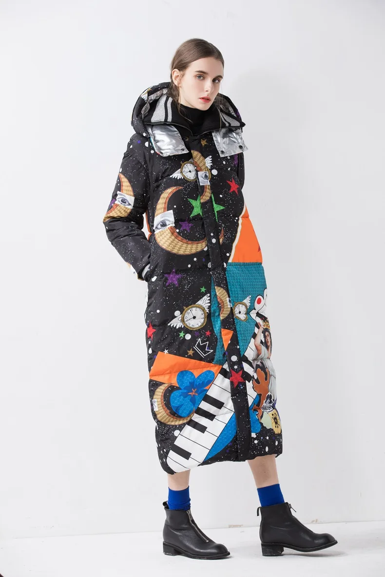 Женское пальто с принтом, зимнее свободное пуховое пальто, теплое пальто, 2021