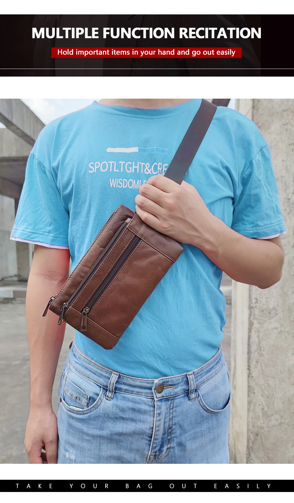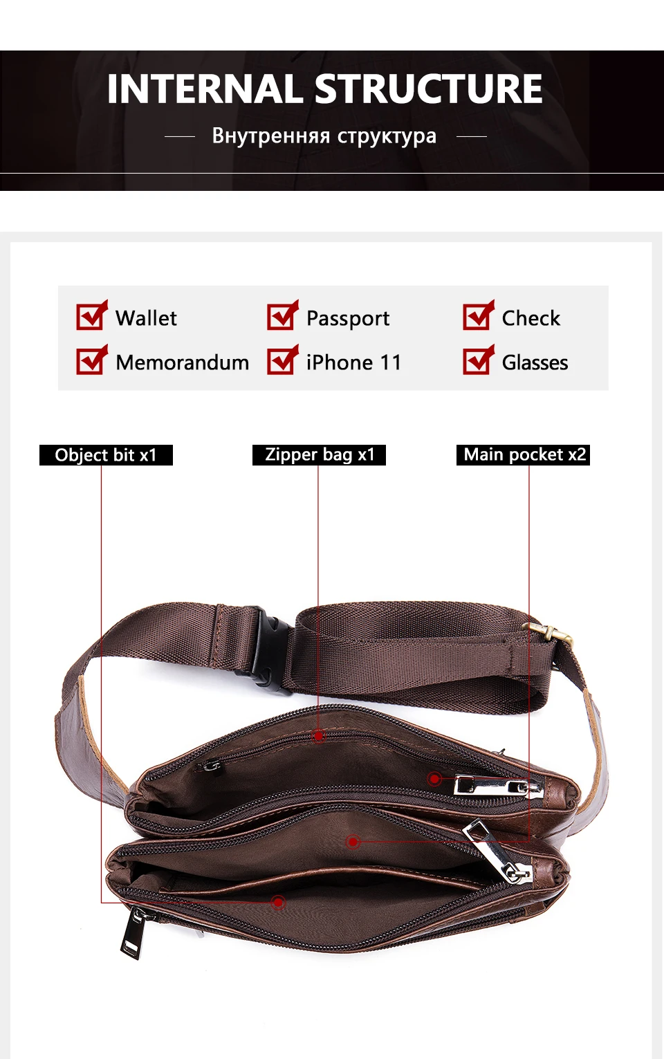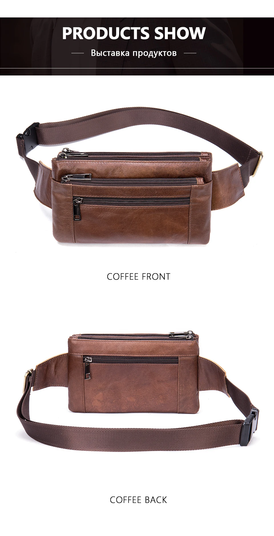 Сумка поясная мужская из натуральной кожи, с отделением для банкнот, 8953