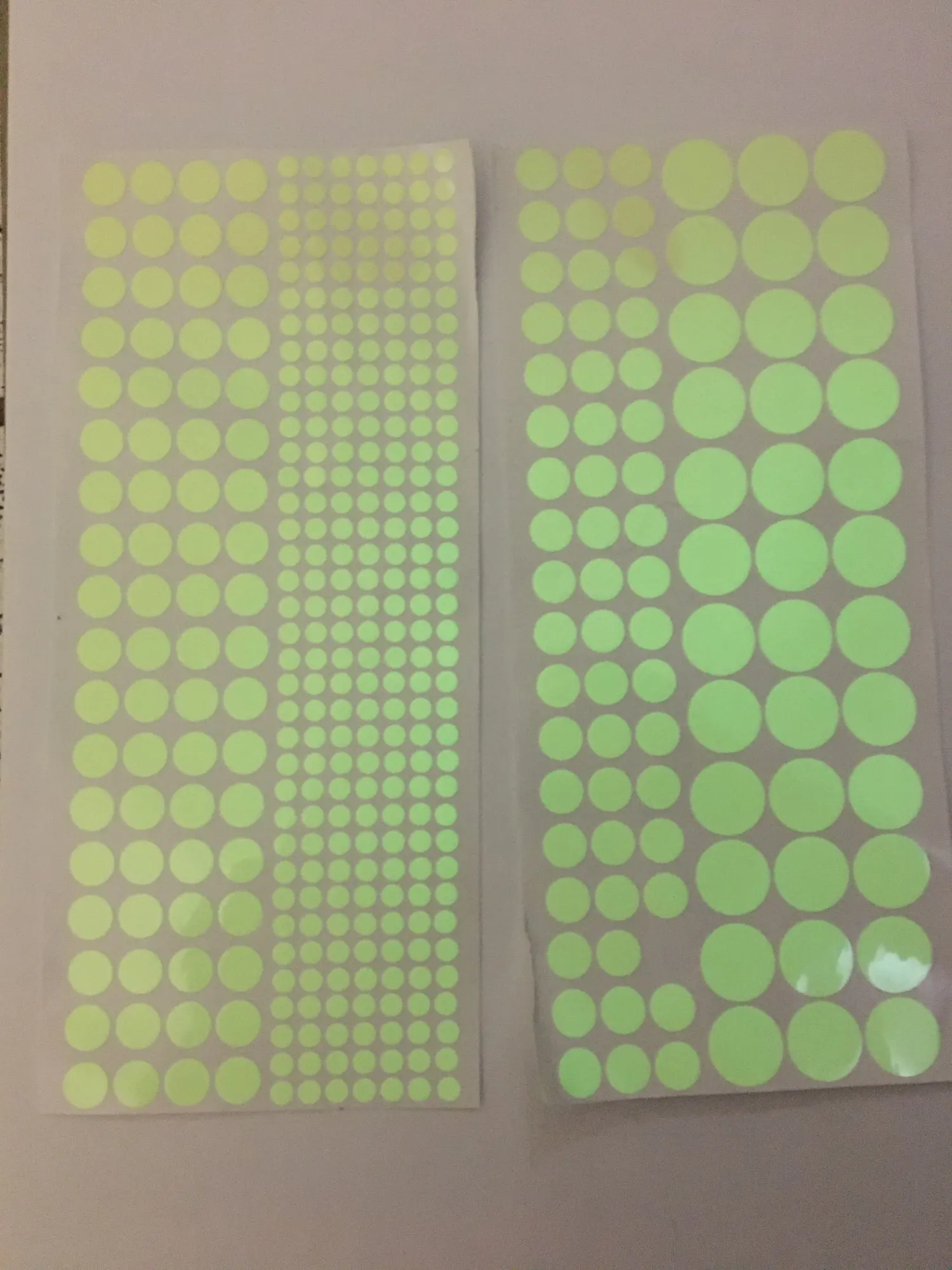 407 шт круглых точечных флуоресцентных наклеек разных размеров, будут светитьсяТемный