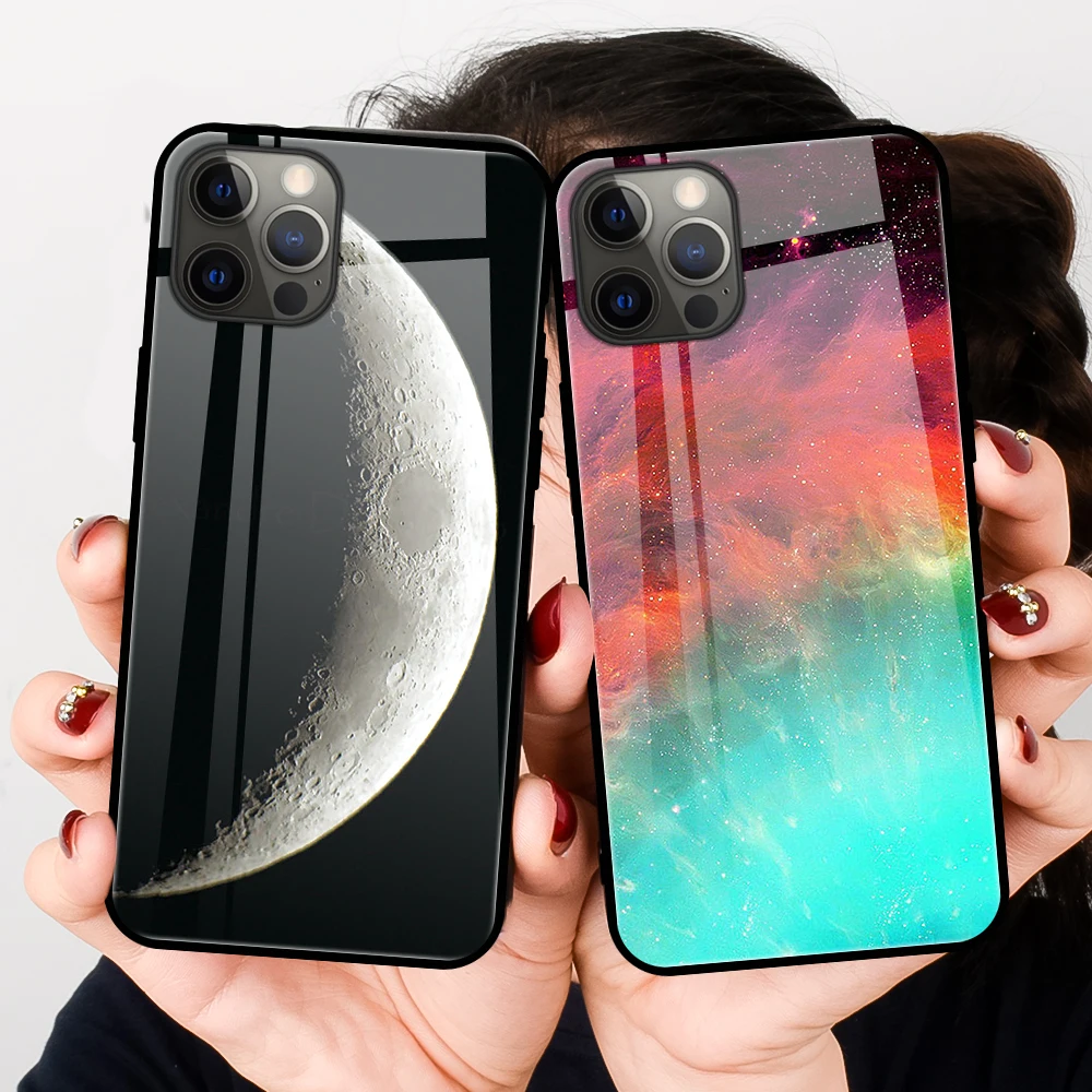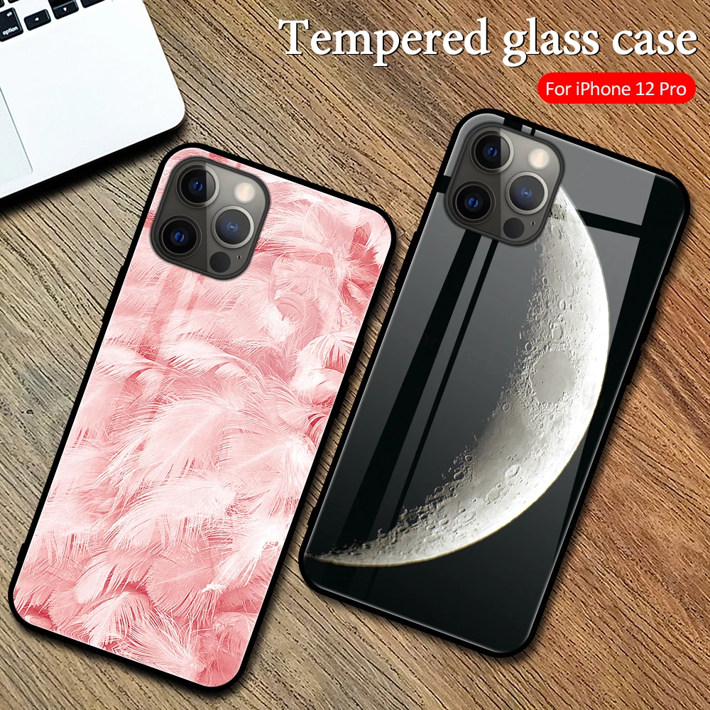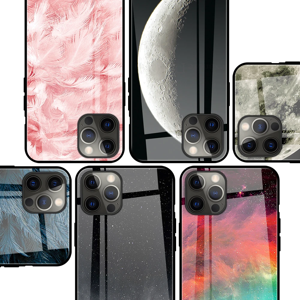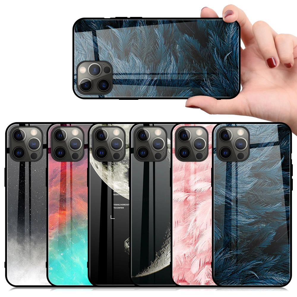 Чехол из закаленного стекла с рисунком для IPhone XR XS 12 11 Pro M...