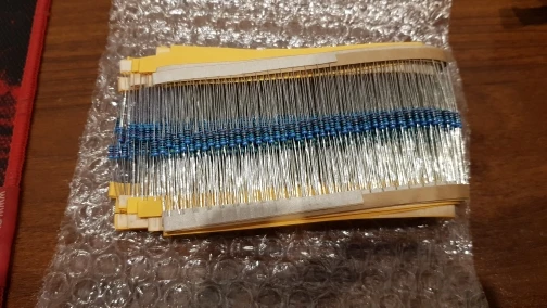 Резисторы хорошие среди китайских. (как у всех ножки магнитятся) Вместо 100шт было 103-105 шт. Основная масса укладывается в 1% Но одиночные экземпляры могут выпадать до 5%