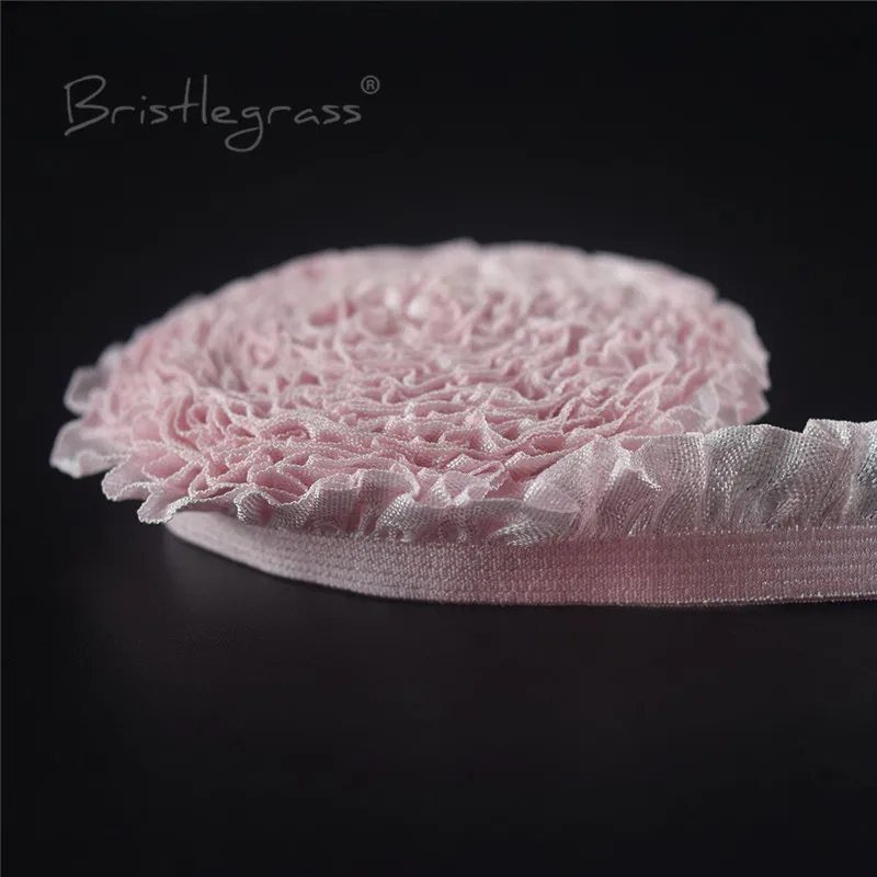 BRISTLEGRASS 2 5 10 ярдов 5/8 "15 мм Блестящий оборками кружевной отделкой резинки ленты из спандекса волосы галстук платье с повязкой DIY швейная отделка