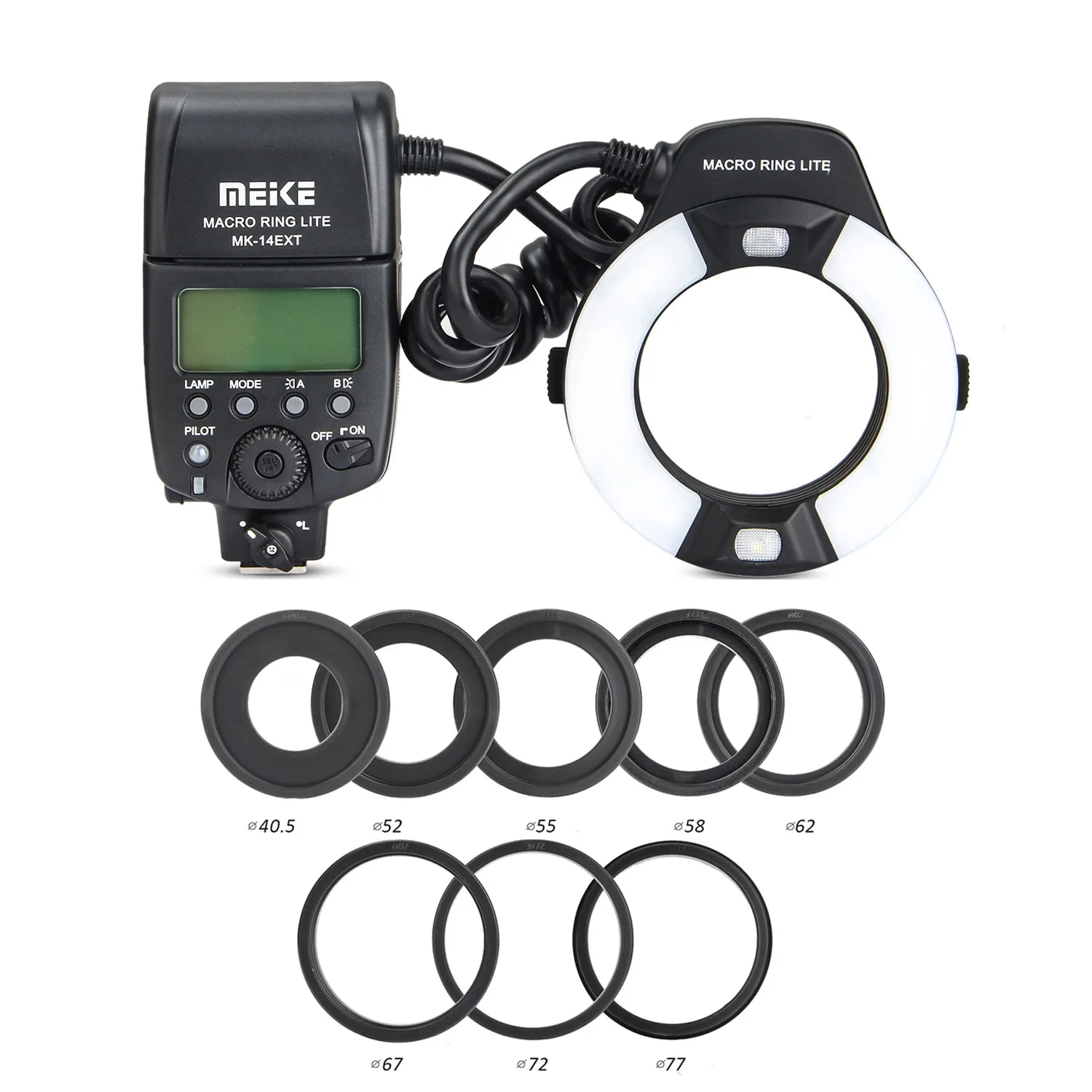 Макро Кольцевая вспышка может производить светильник, который уменьшает тень, которая отлично подходит для макросъемки. Вспышка устанавливается перед вашим объективом, производящим светильник, который обертывает предметы. 7 переходное кольцо входит в комплект для подключения фонарика к объективу.
