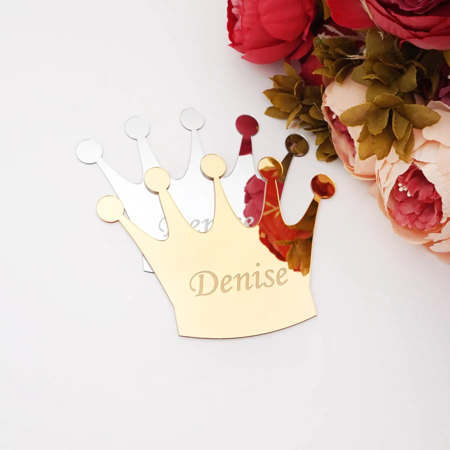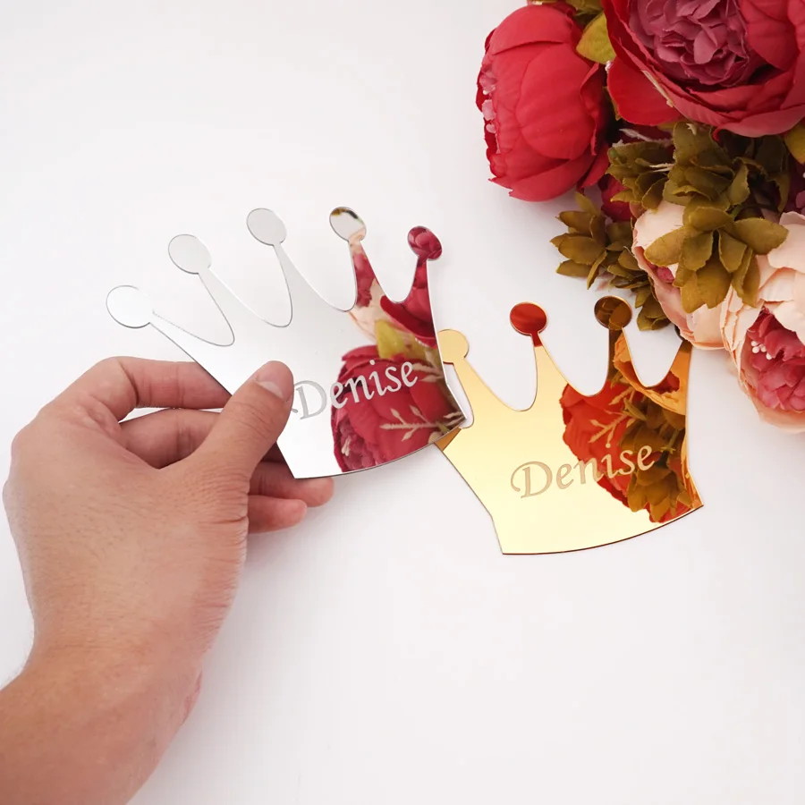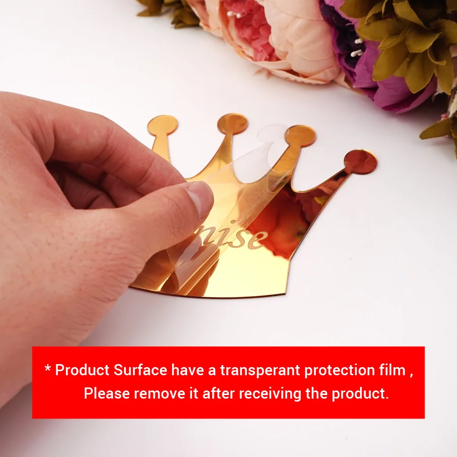 Зеркальная акриловая зеркальная корона на заказ, наклейка с клеем, индивидуальное украшение на день рождения, подарок для детской комнаты сделай сам