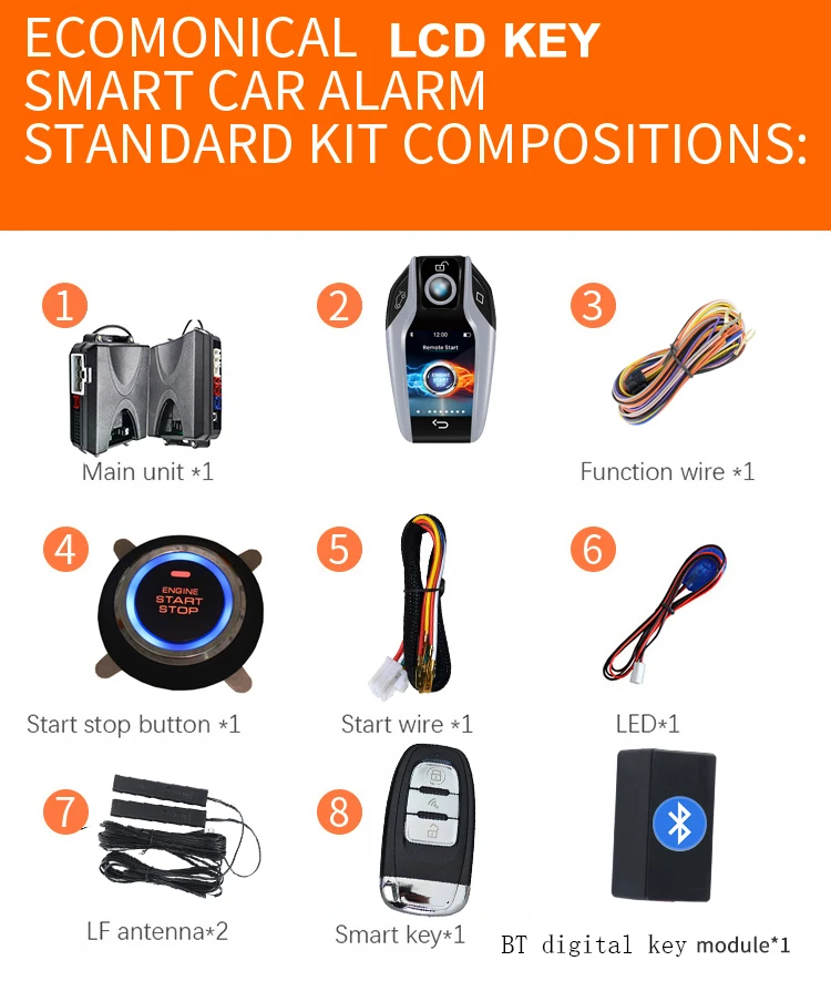 Bt цифровой ключ автомобиля жидкий ЖК-ключ дистанционного запуска автосигнализации